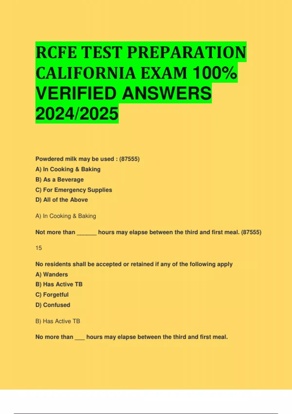 BEST REVIEW RCFE TEST PREPARATION CALIFORNIA EXAM 100% VERIFIED ANSWERS 2024/2025