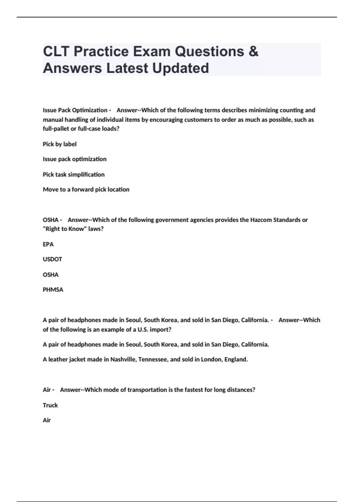 clt practice exam questions answers latest updat