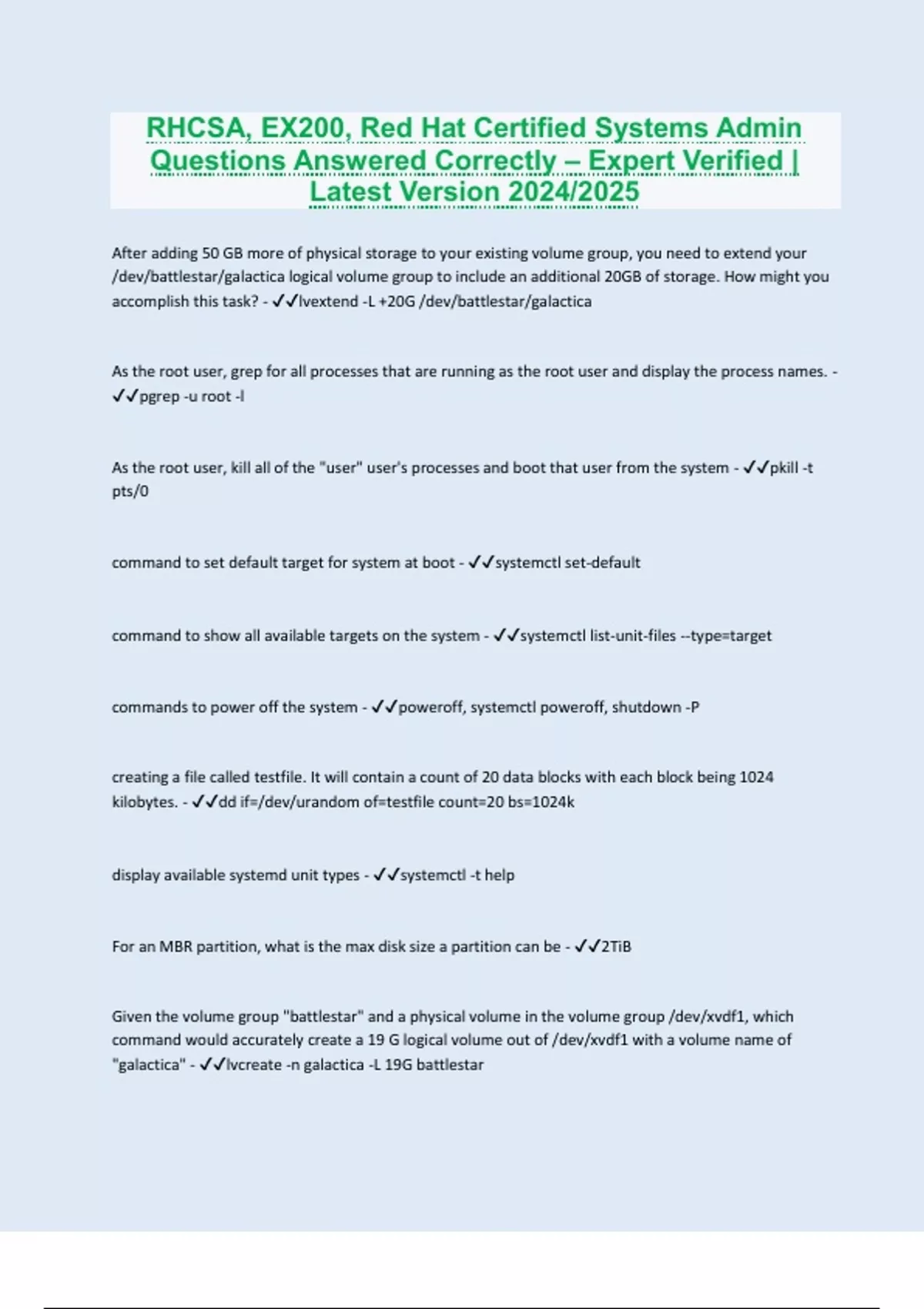 RHCSA, EX200, Red Hat Certified Systems Admin Questions Answered Correctly – Expert Verified | Latest Version 2024/2025