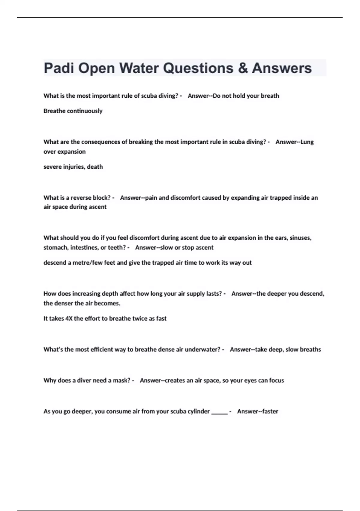 Padi Open Water Questions & Answers.