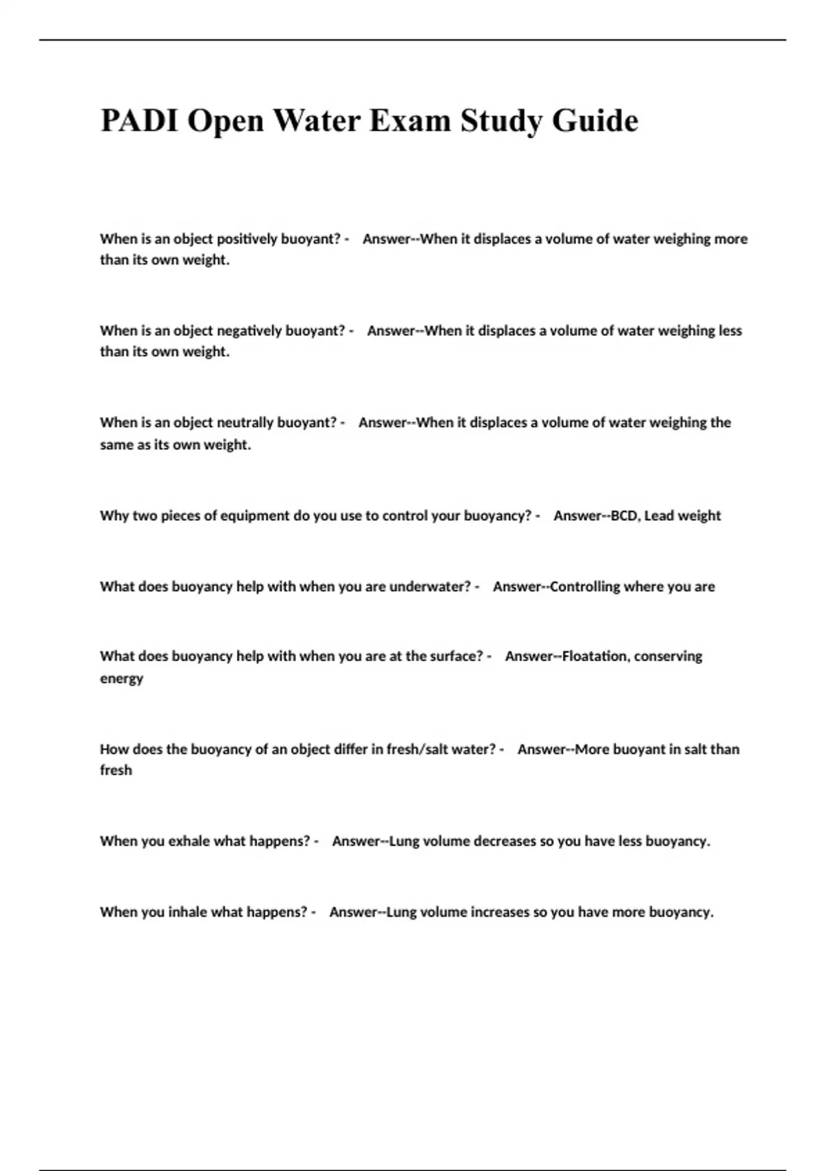 PADI Open Water Exam Study Guide.