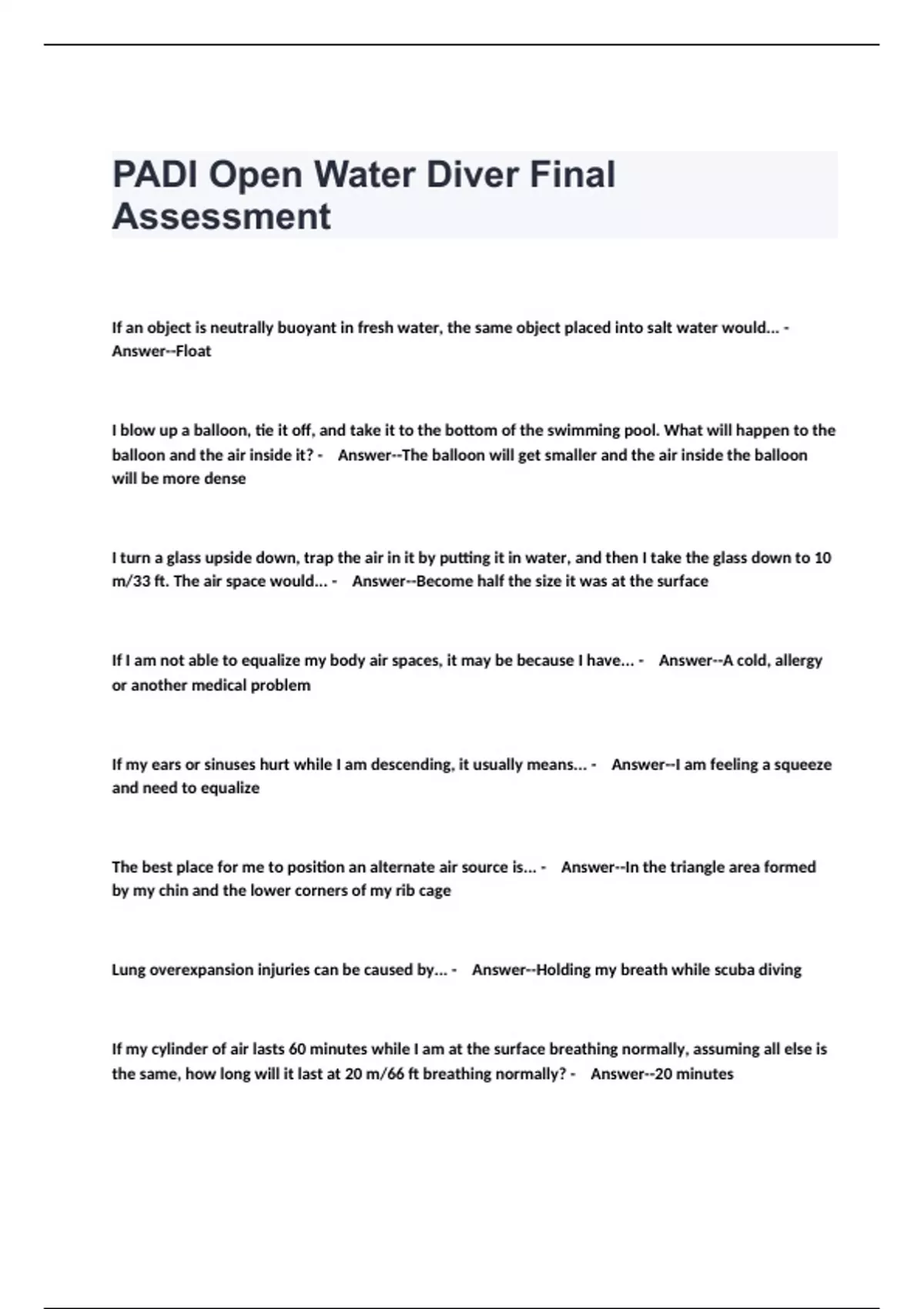 PADI Open Water Diver Final Assessment