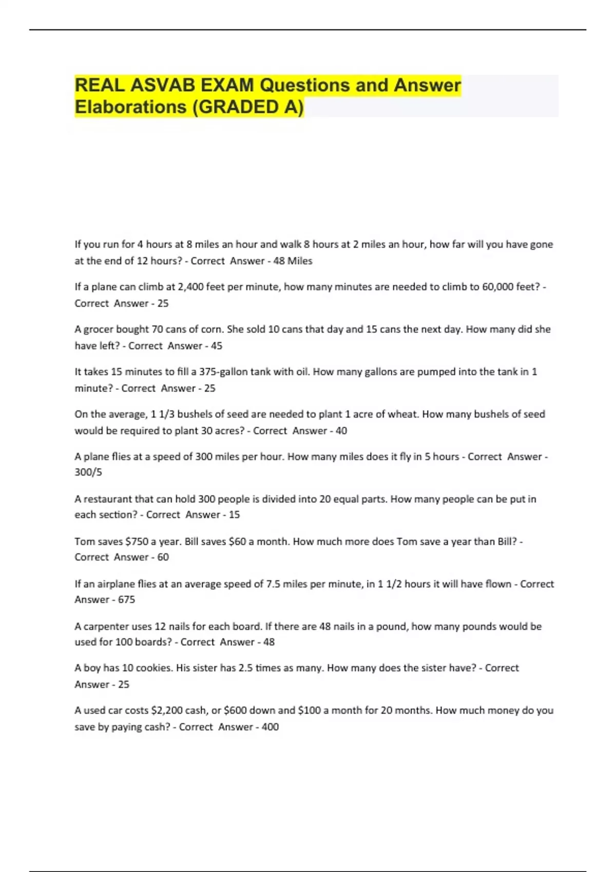 REAL ASVAB EXAM Questions and Answer Elaborations (GRADED A)
