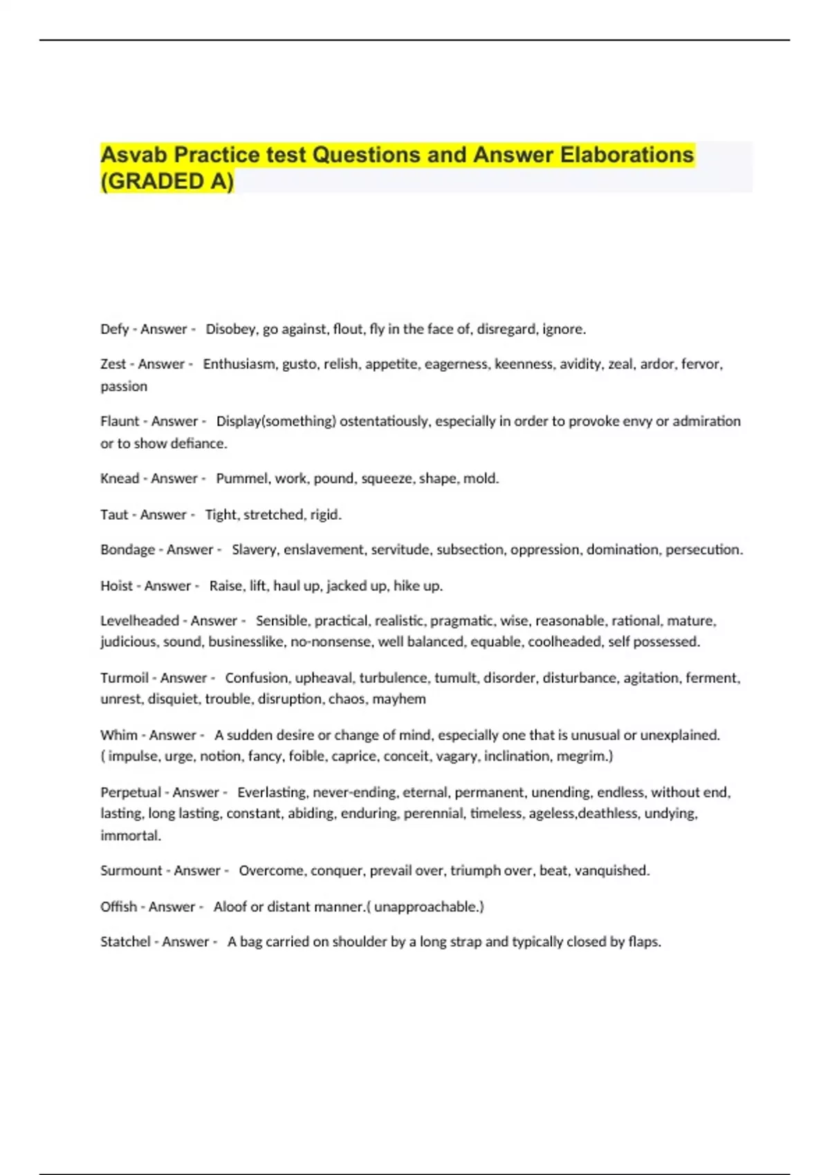 Asvab Practice test Questions and Answer Elaborations (GRADED A).