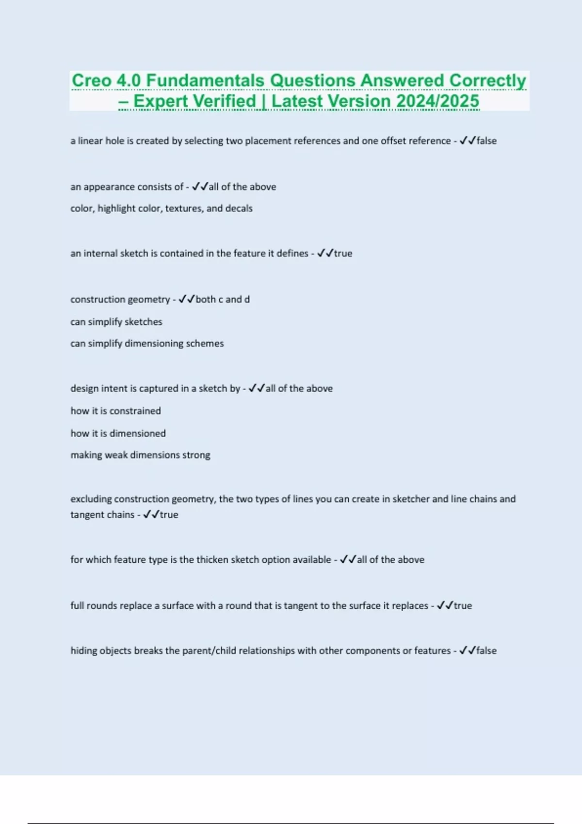 Creo 4.0 Fundamentals Questions Answered Correctly – Expert Verified | Latest Version 2024/2025