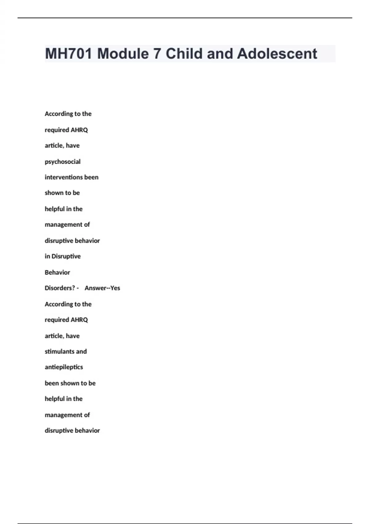MH701 Module 7 Child and Adolescent
