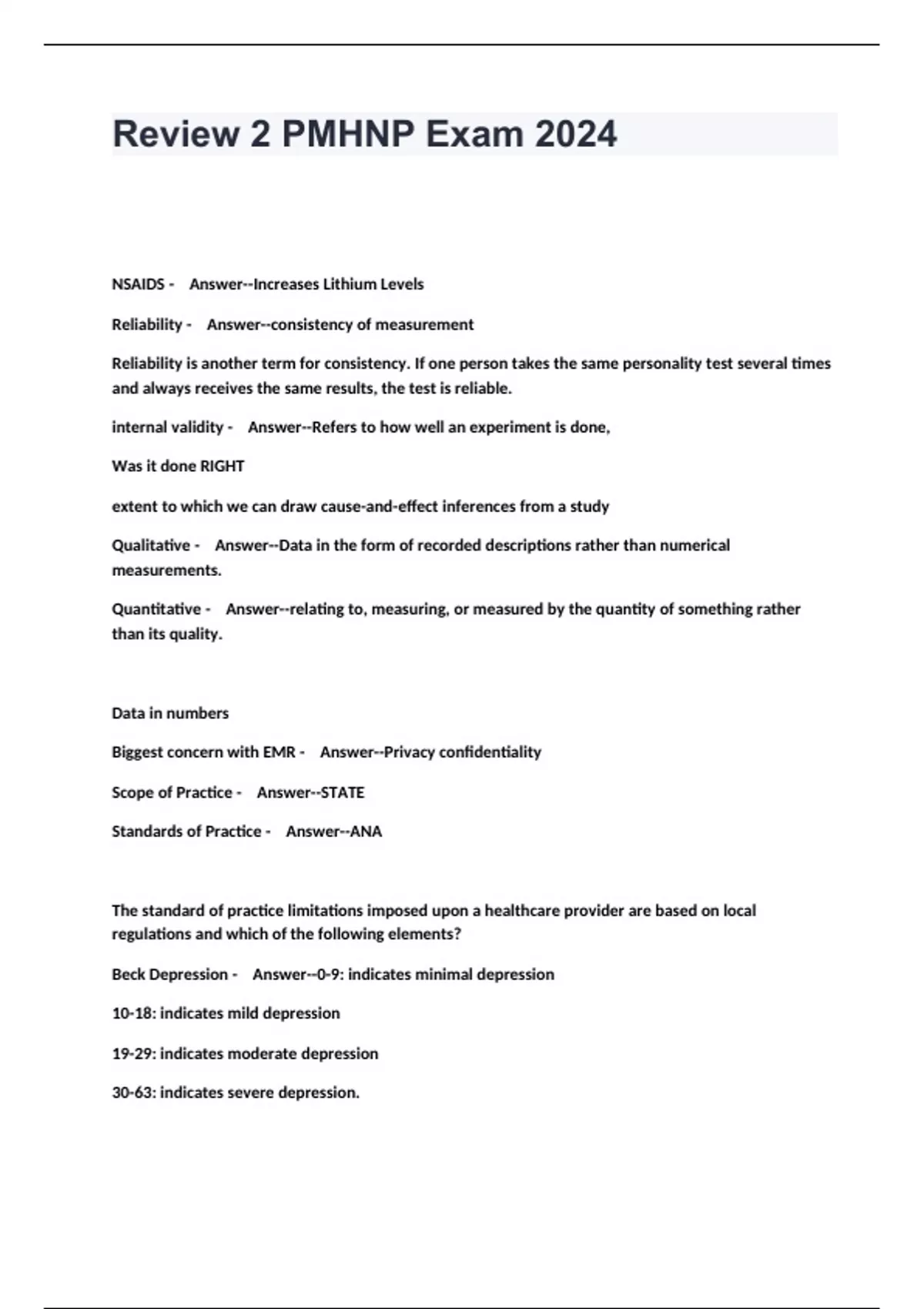 Review 2 PMHNP Exam 2024