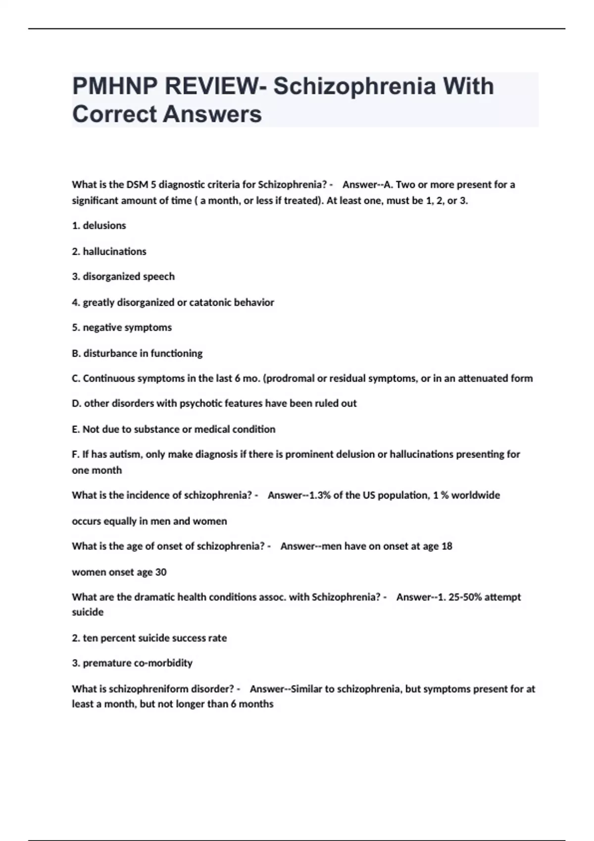 PMHNP REVIEW- Schizophrenia With Correct Answers.