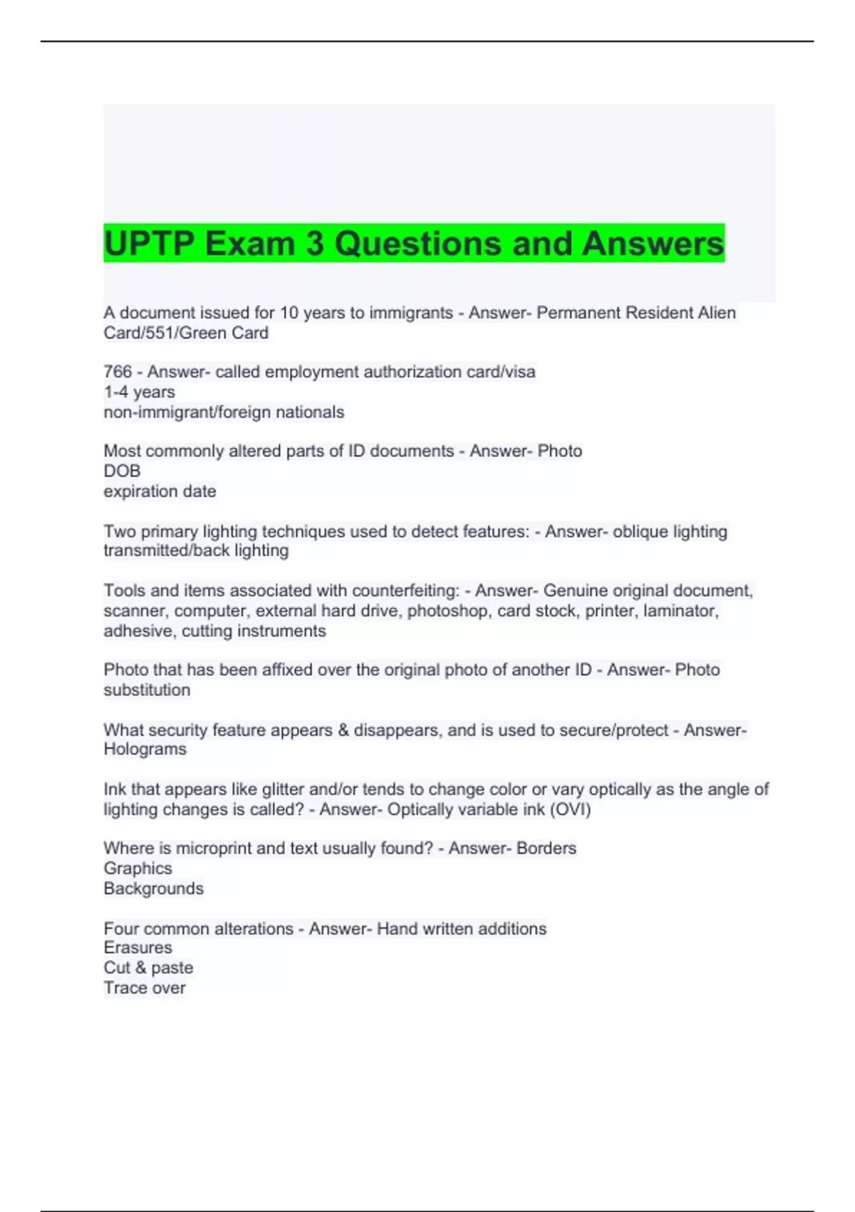 uptp exam 3 questions and answers