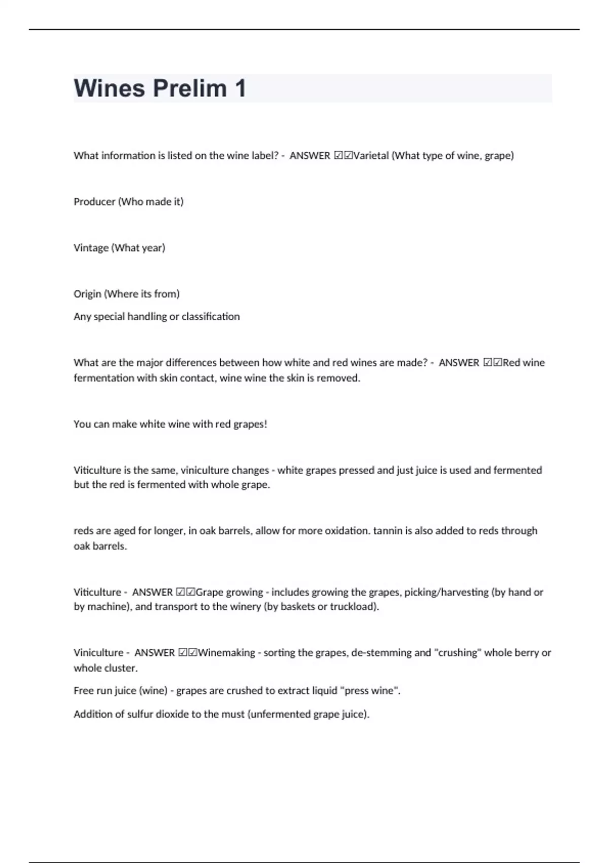 Wines Prelim 1 exam 2024 with 100% accurate solutions