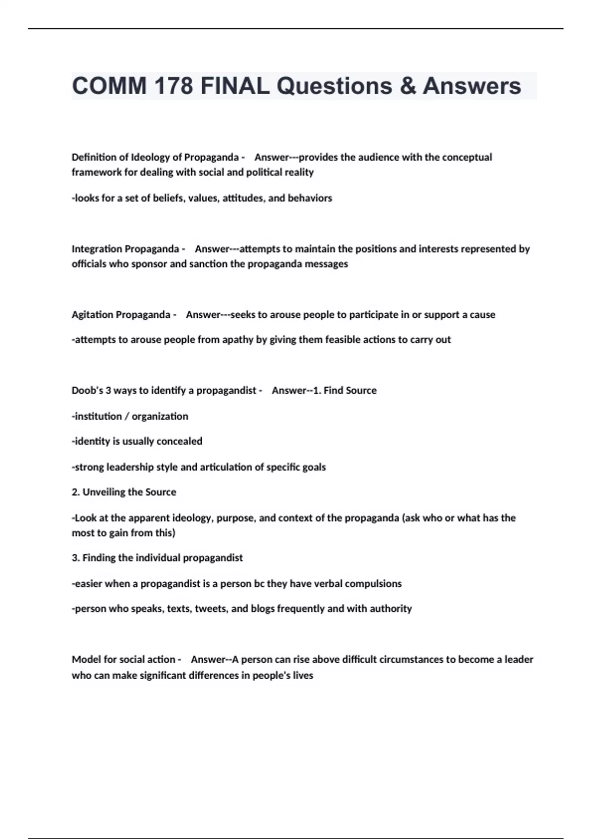 COMM 178 FINAL Questions & Answers.