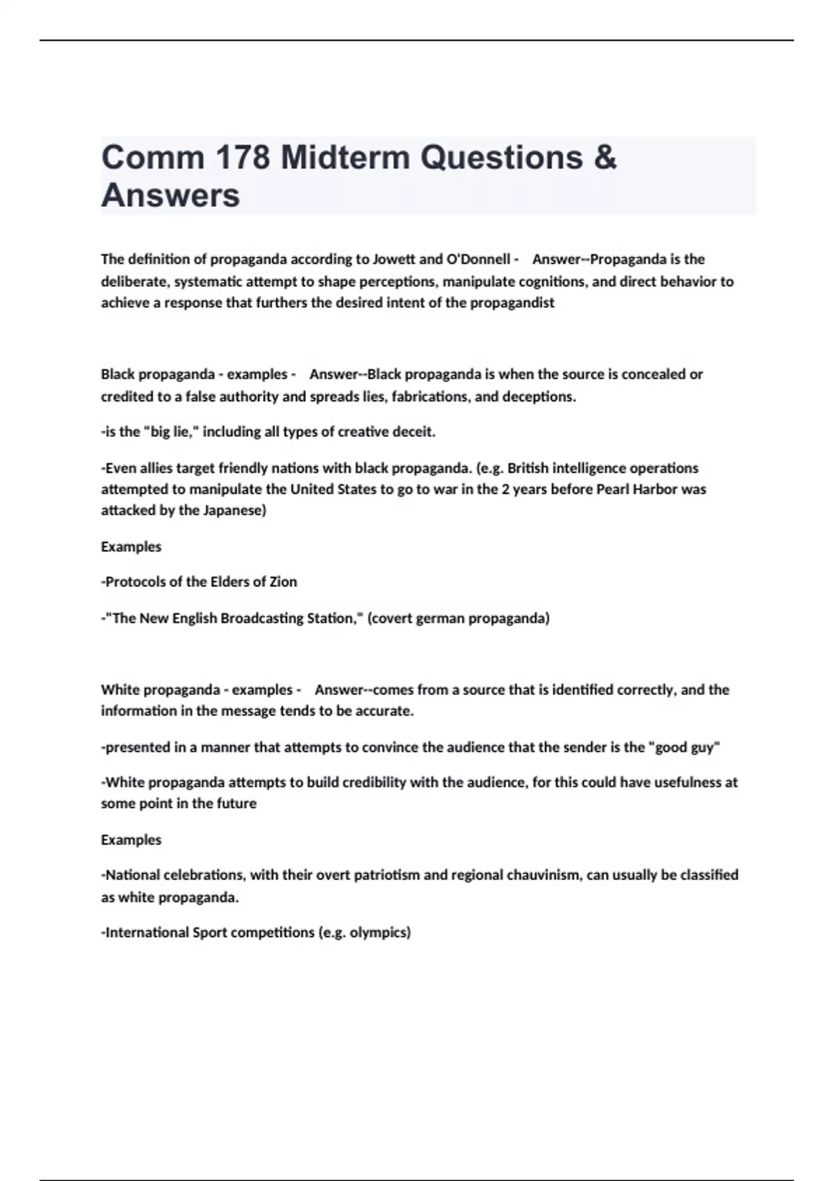 Comm 178 Midterm Questions & Answers.