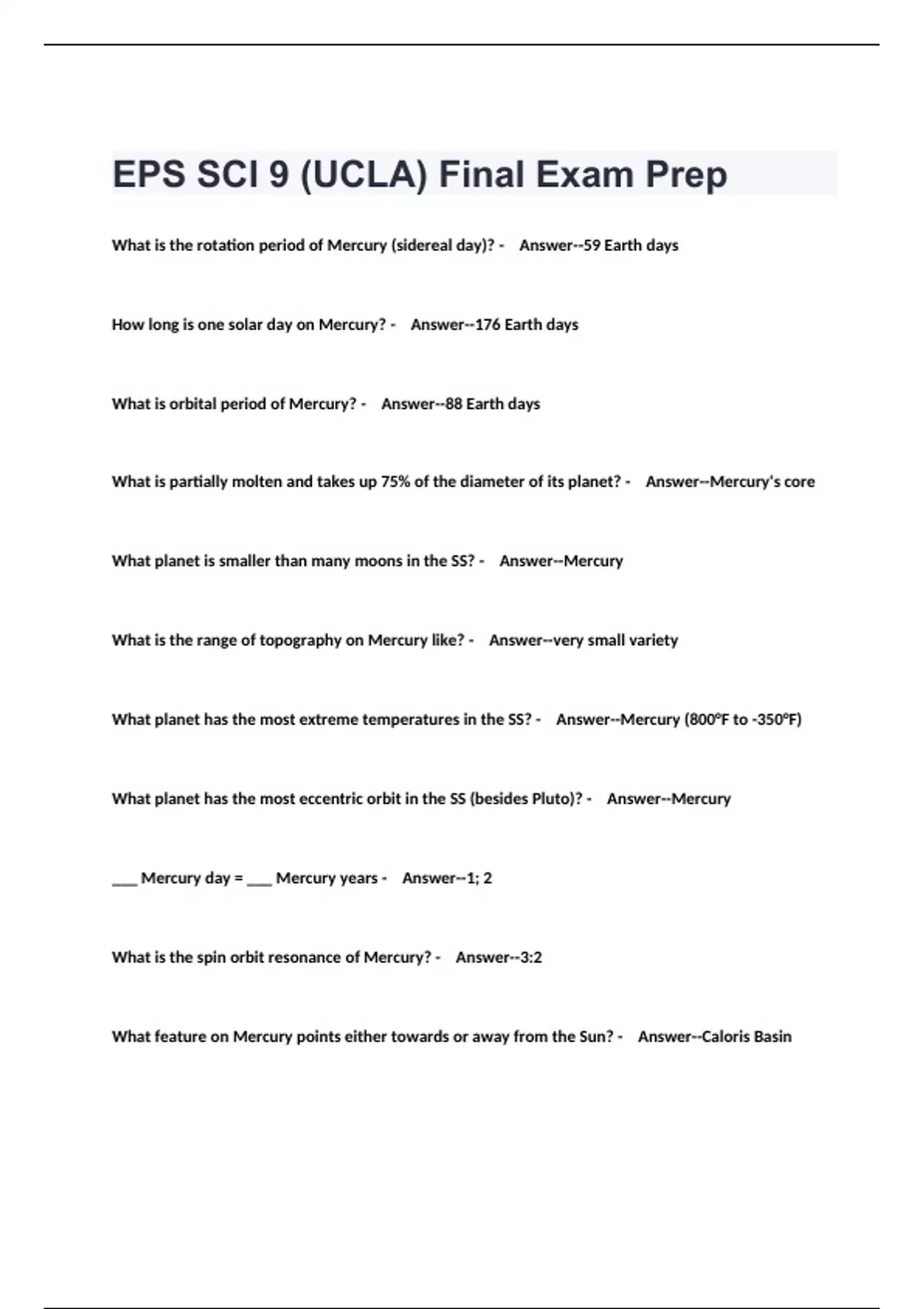 EPS SCI 9 (UCLA) Final Exam Prep.
