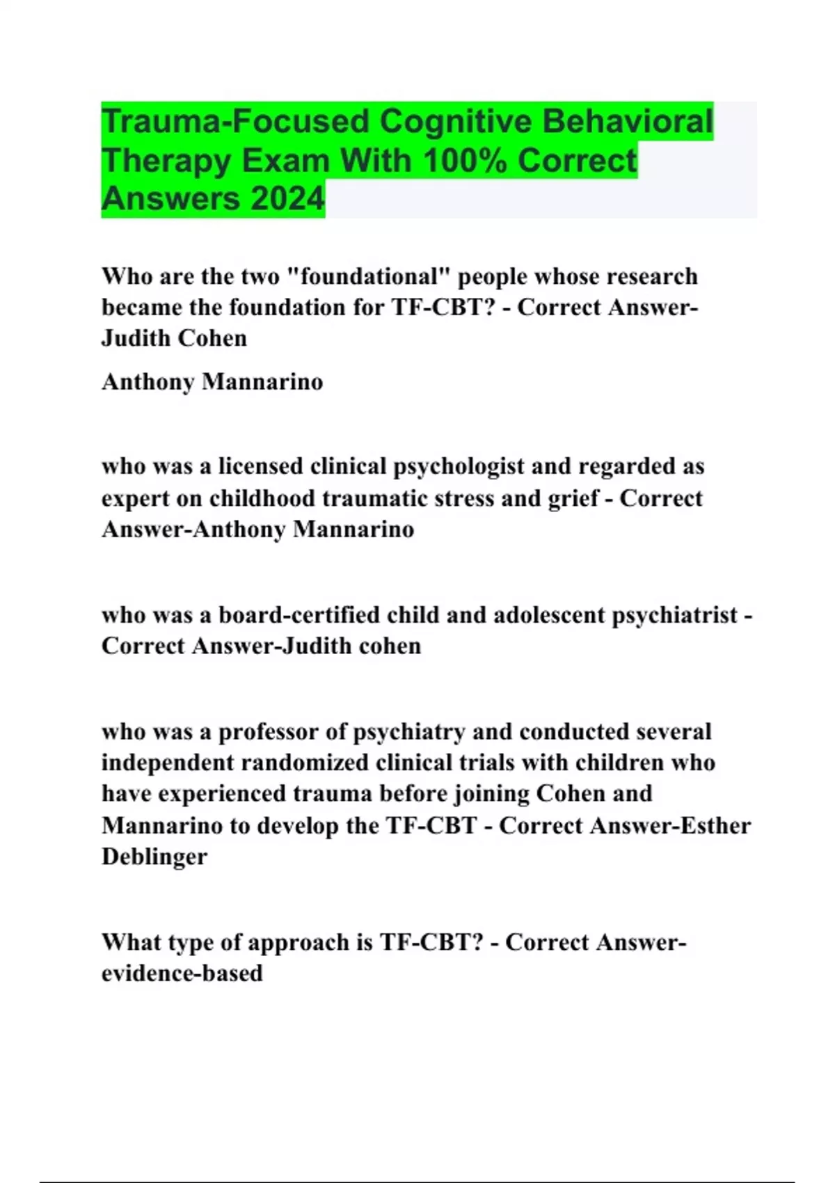 Trauma-Focused Cognitive Behavioral Therapy Exam With 100% Correct Answers 2024