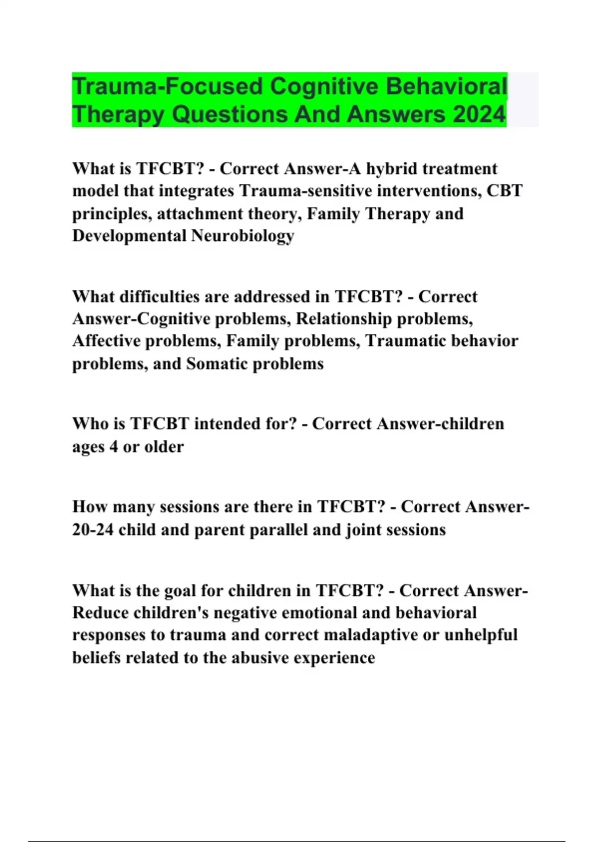 Trauma-Focused Cognitive Behavioral Therapy Questions And Answers 2024