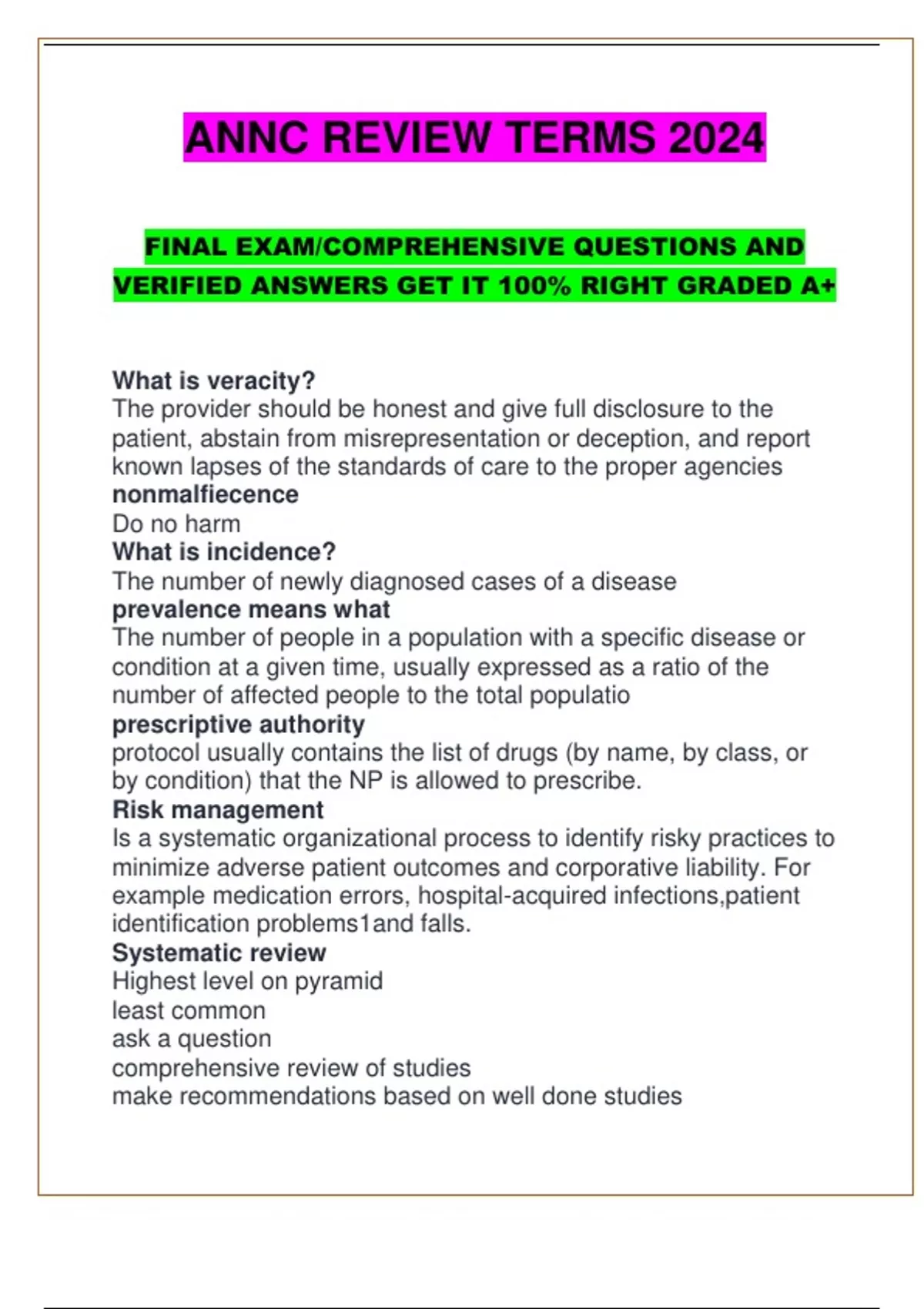 FINAL EXAM/COMPREHENSIVE QUESTIONS AND