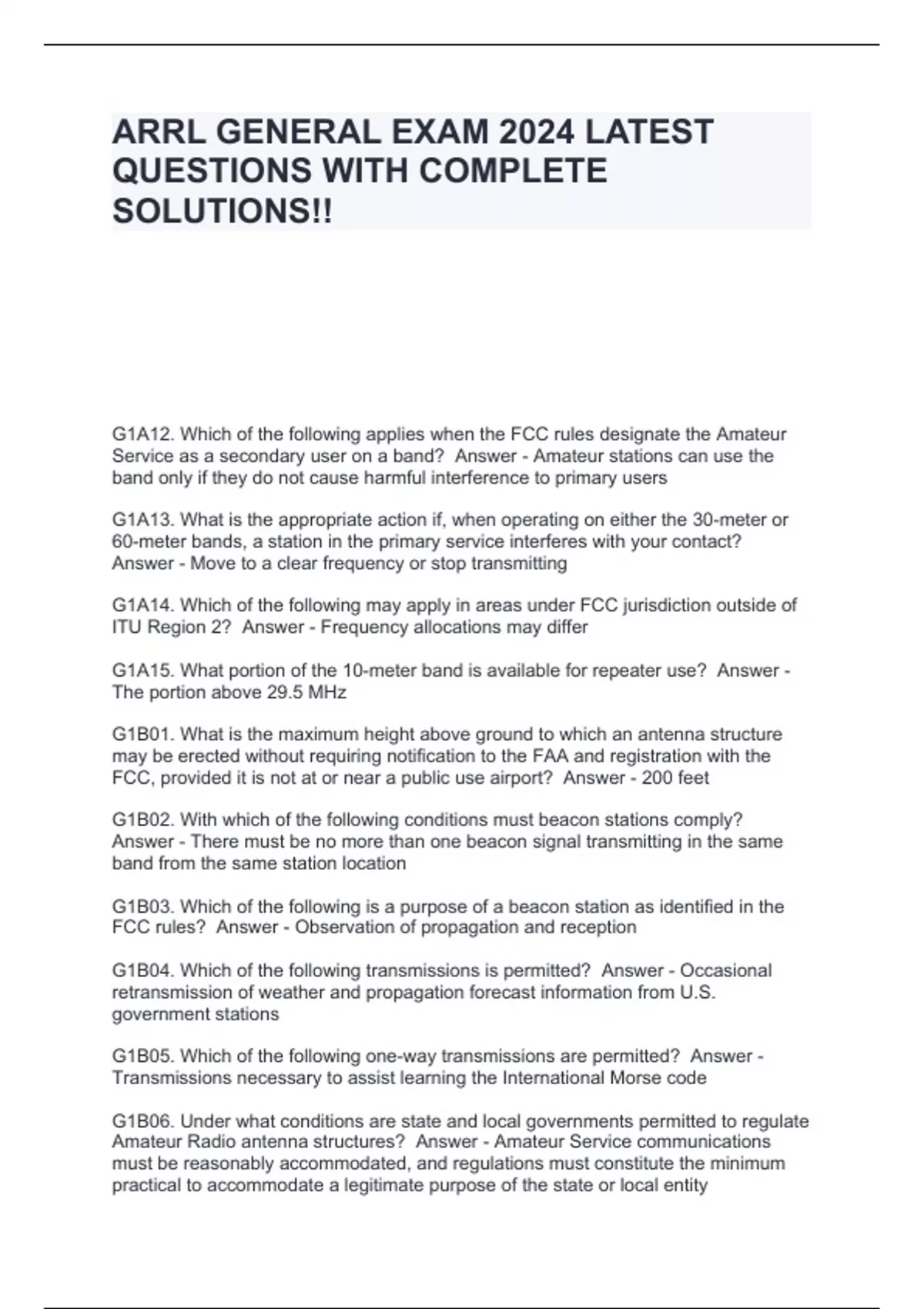 ARRL GENERAL EXAM 2024 LATEST QUESTIONS WITH COMPLETE SOLUTIONS!!