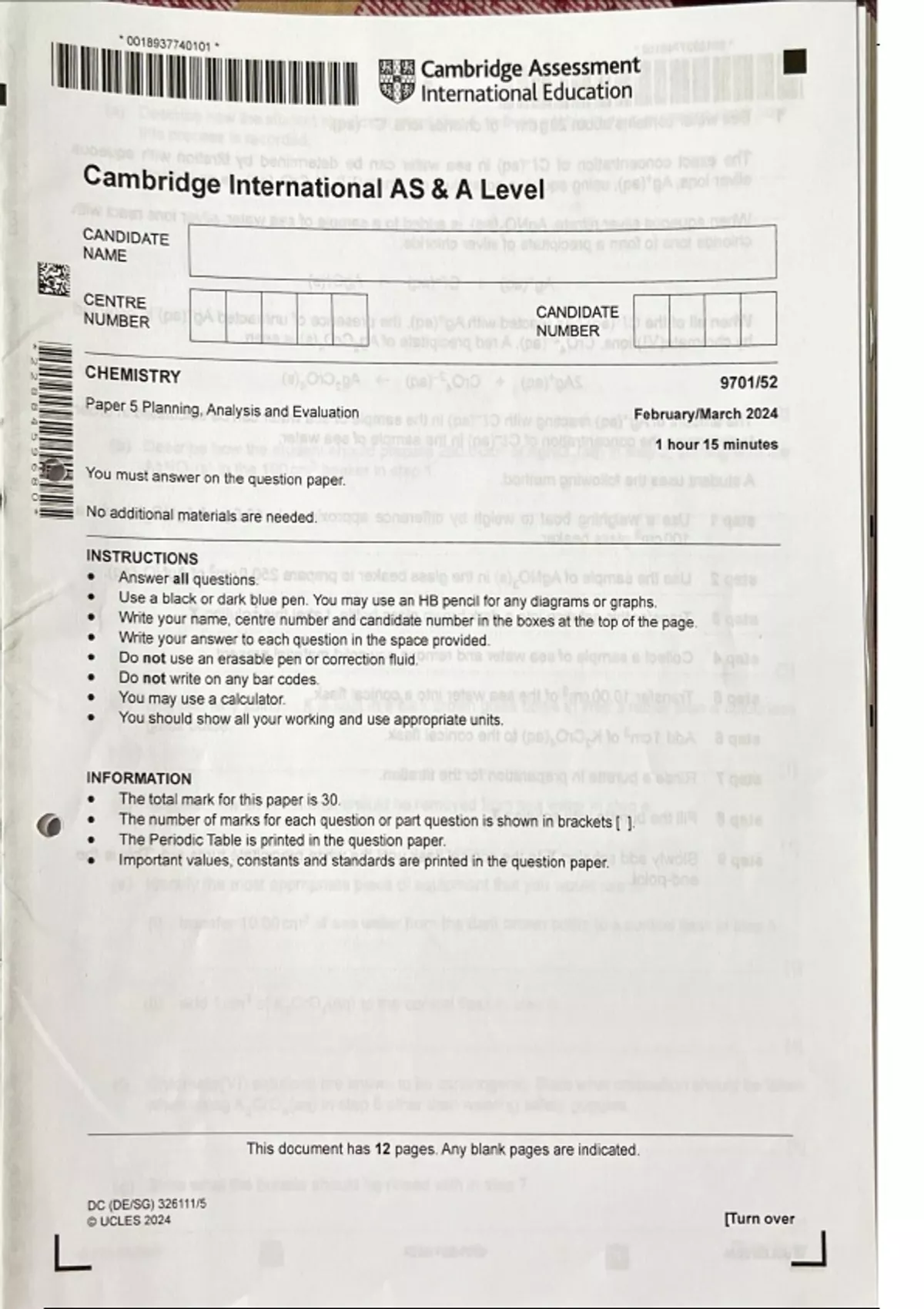 Exam of 7 pages for the course PREP 2024 at PREP 2024 (Chem p5)
