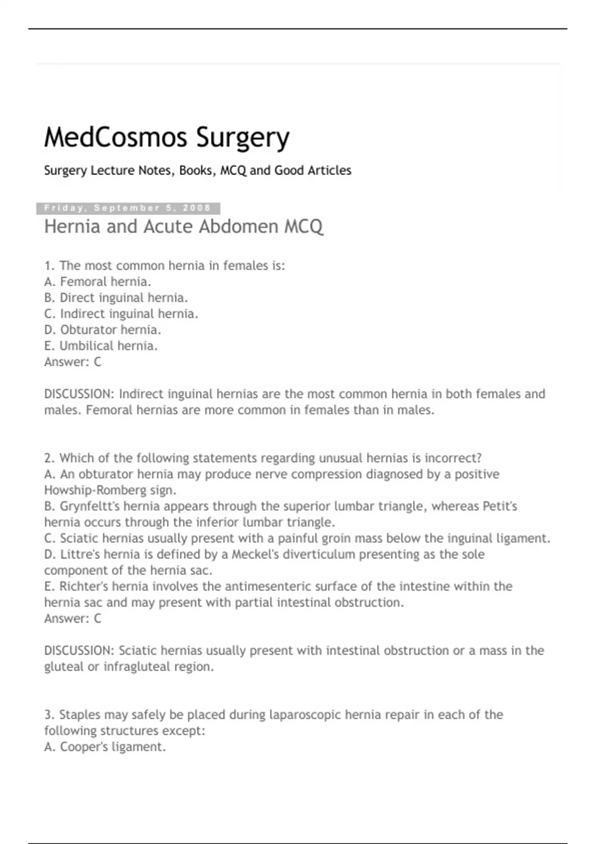 MedCosmos Surgery- Hernia and Acute Abdomen MCQ
