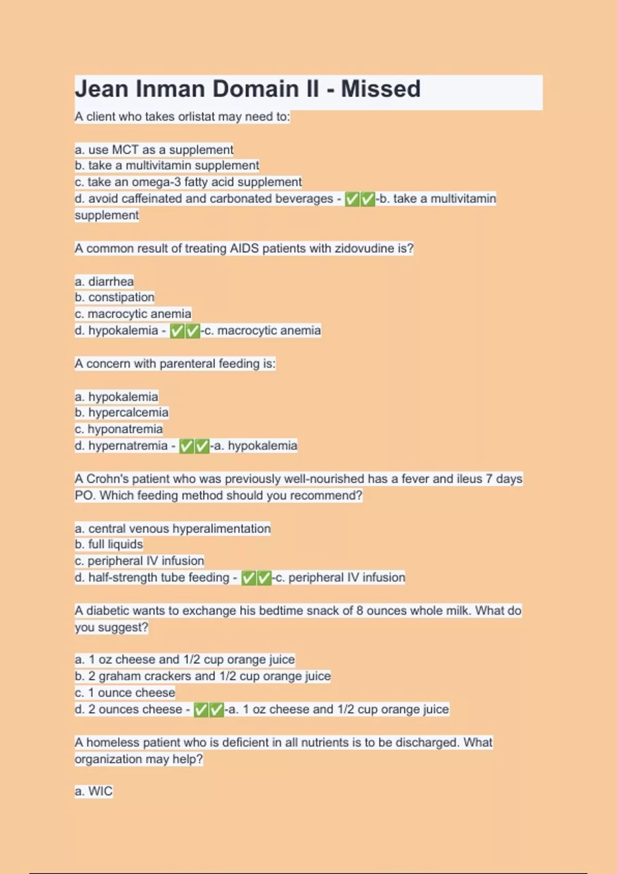 Jean Inman Domain II - Missed - - Questions with Explanations of Answers