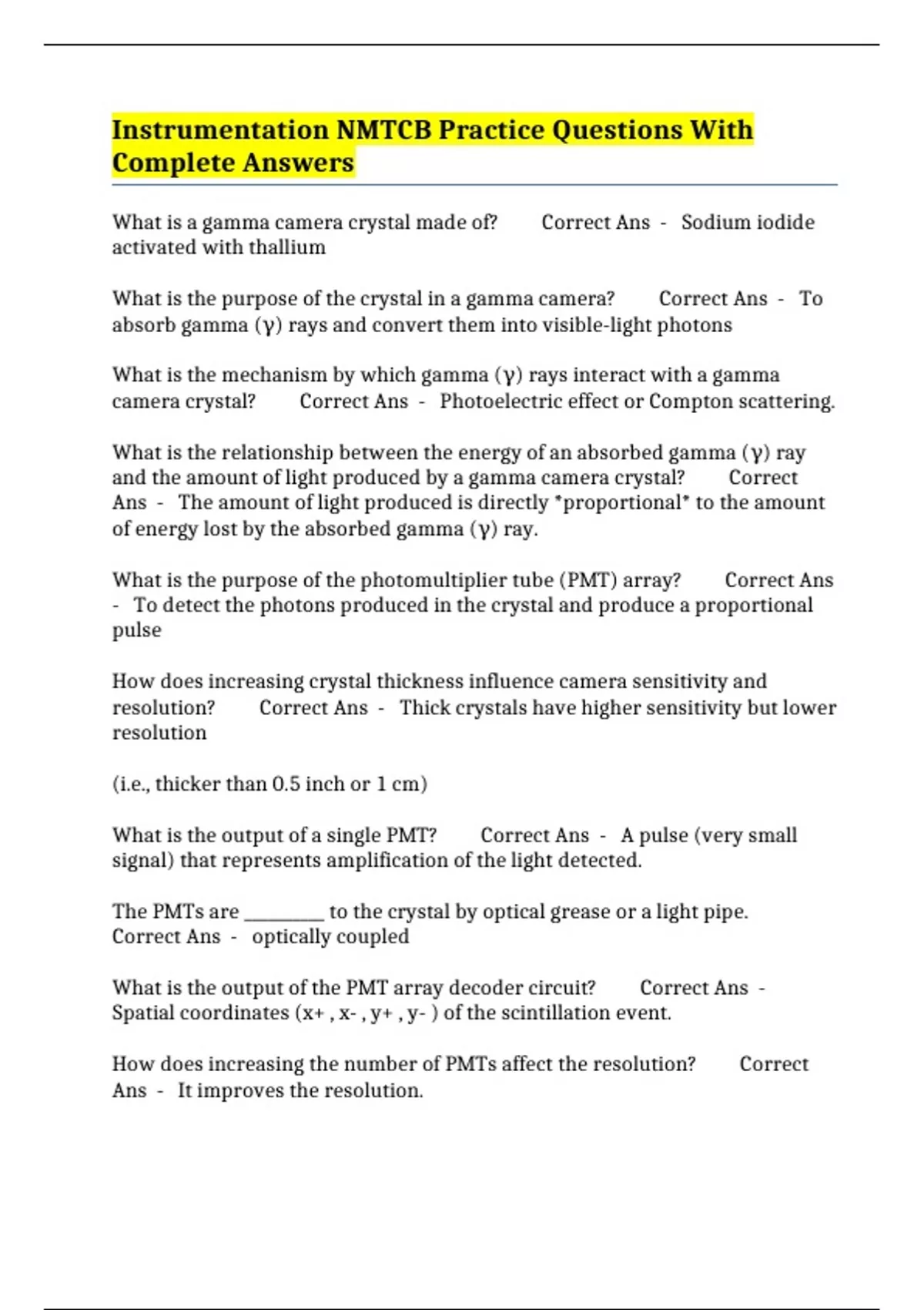 Instrumentation NMTCB Practice Questions With Complete Answers