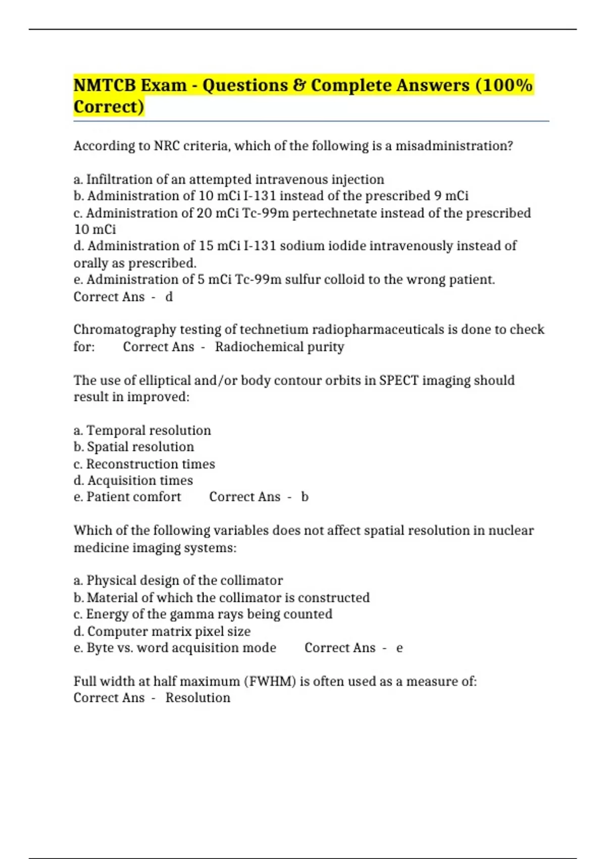 NMTCB Exam - Questions & Complete Answers (100% Correct)