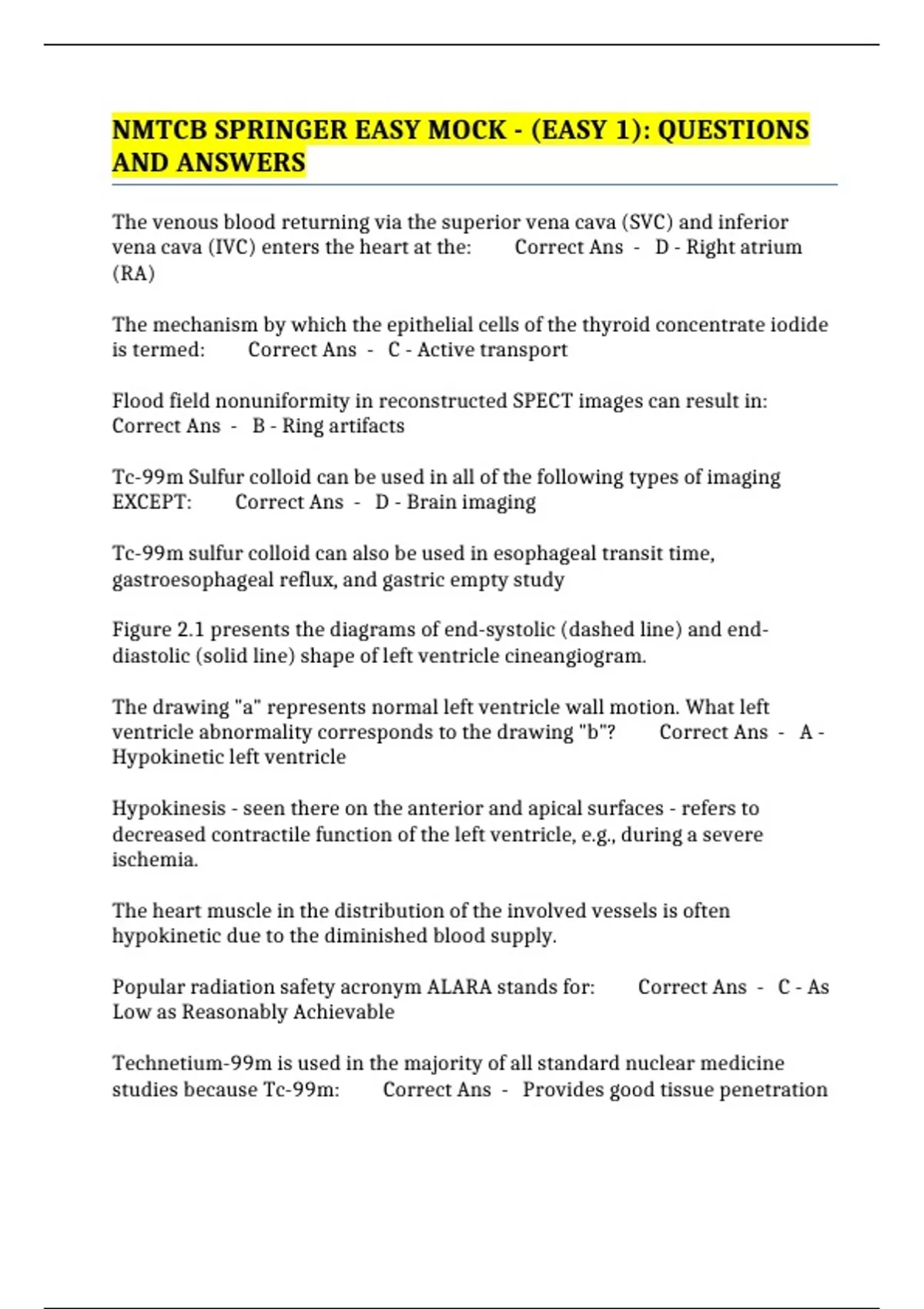 NMTCB SPRINGER EASY MOCK - (EASY 1): QUESTIONS AND ANSWERS