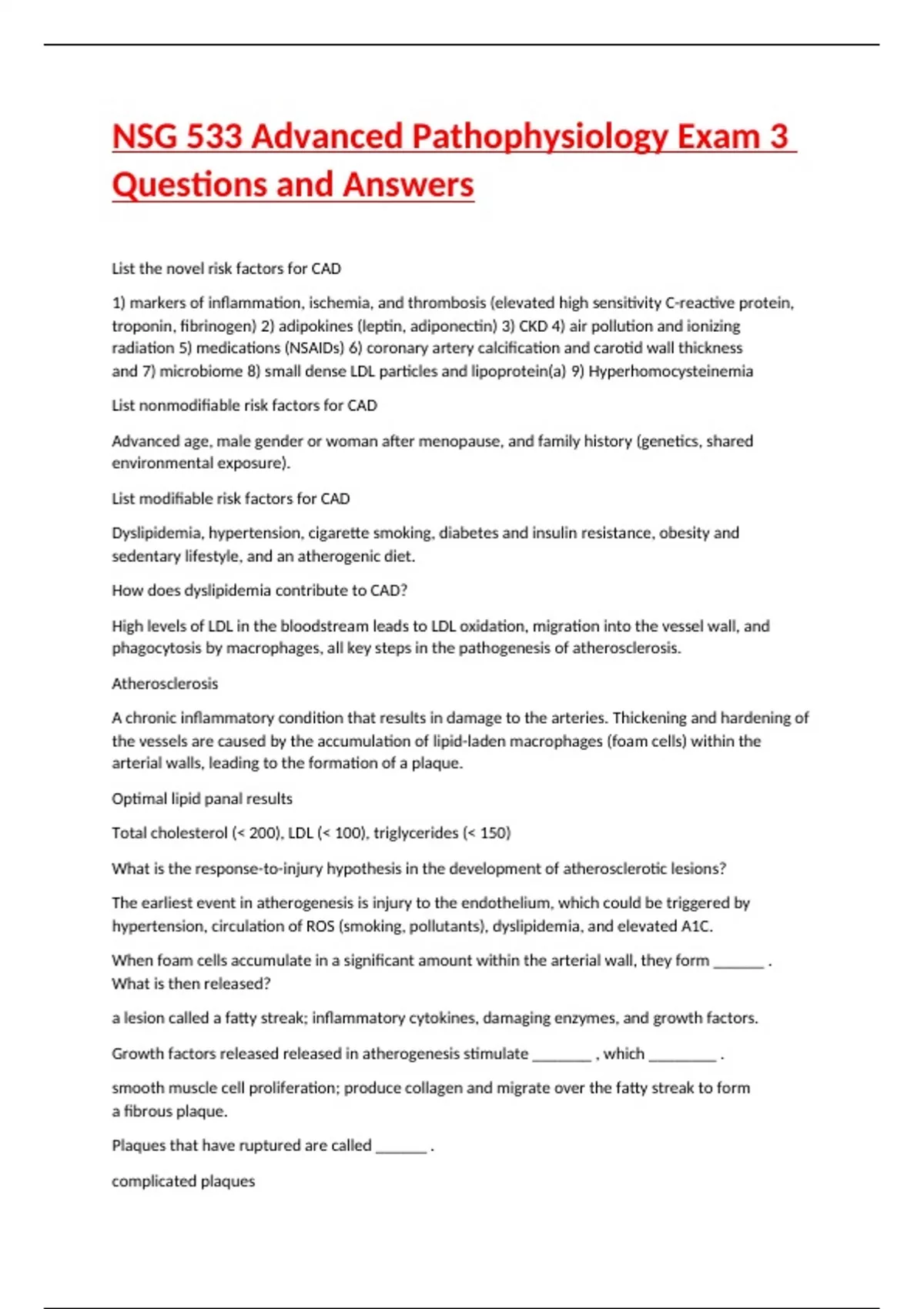 NSG 533 Advanced Pathophysiology Exam 3 Questions and Answers