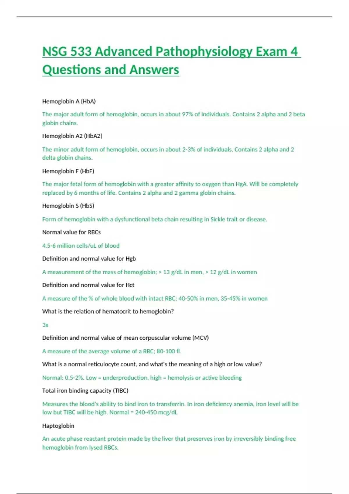 NSG 533 Advanced Pathophysiology Exam 4 Questions and Answers.