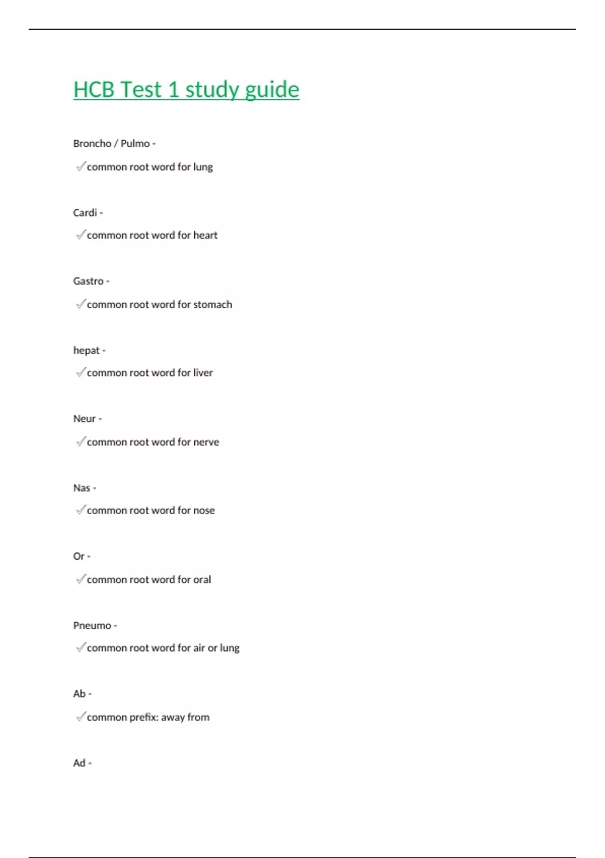 HCB Test 1 study guide