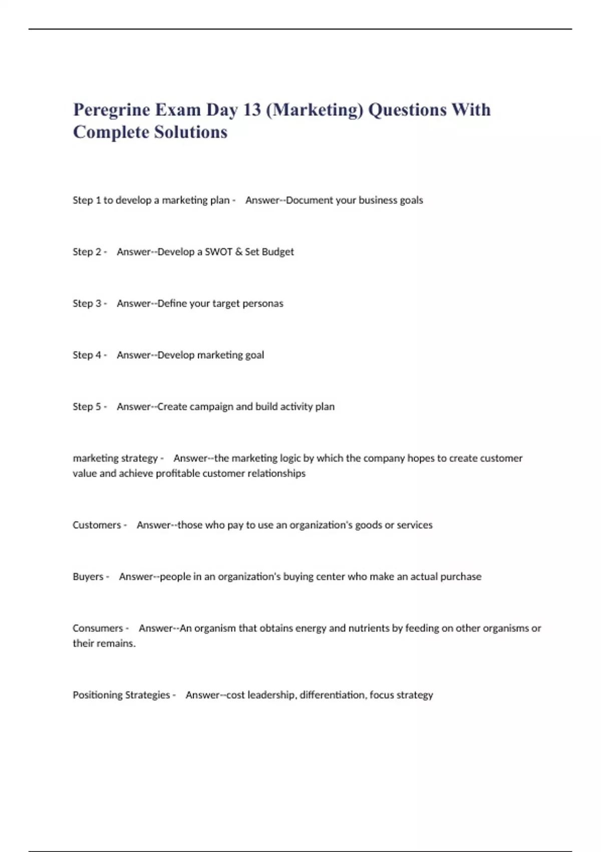 Peregrine Exam Day 13 (Marketing) Questions With Complete Solutions