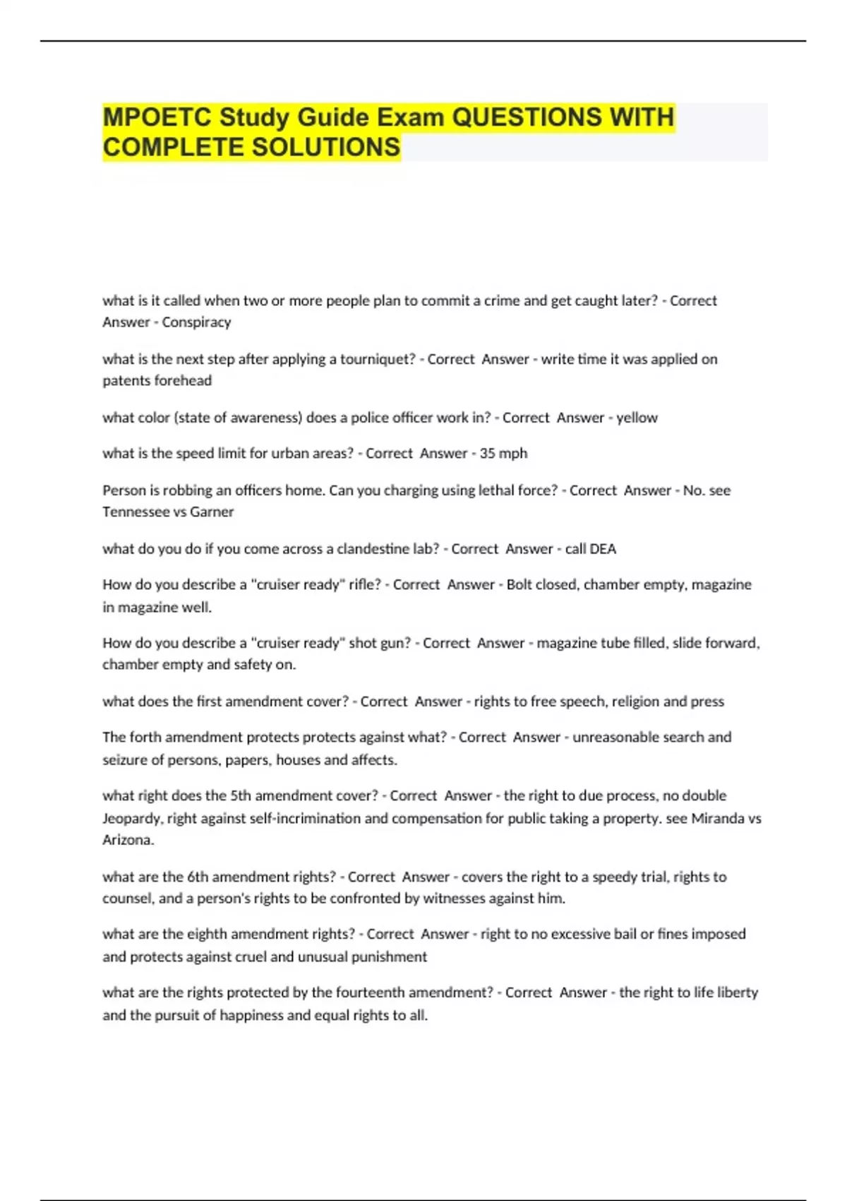 MPOETC ACT 120 CERT STUDY QUESTIONS WITH COMPLETE SOLUTIONS.