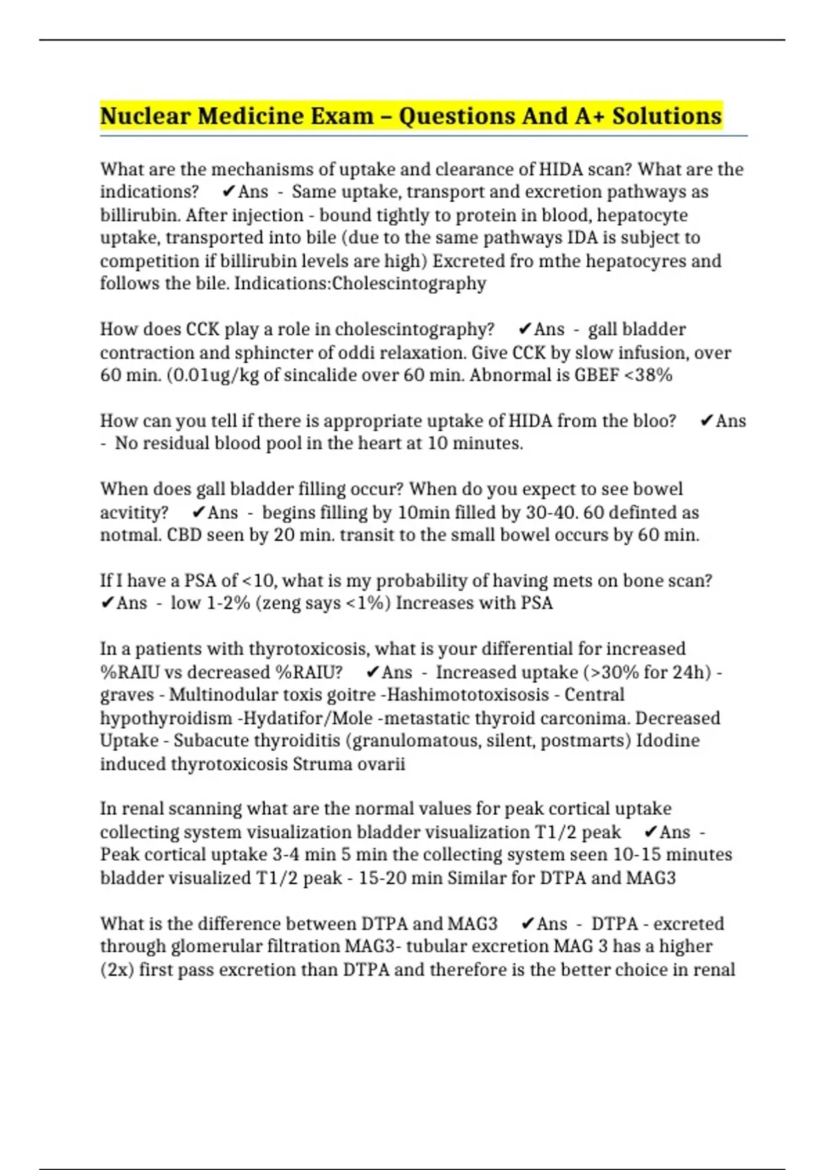Nuclear Medicine Exam – Questions And A+ Solutions
