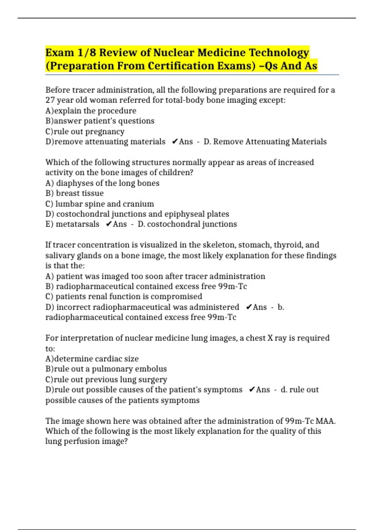 Exam 1/8 Review of Nuclear Medicine Technology (Preparation From Certification Exams) –Qs And As