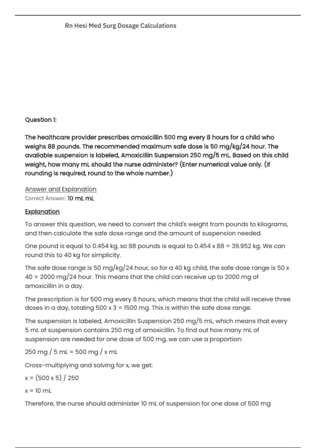 Rn Hesi Med Surg Dosage Calculations questions with well-detailed Answers
