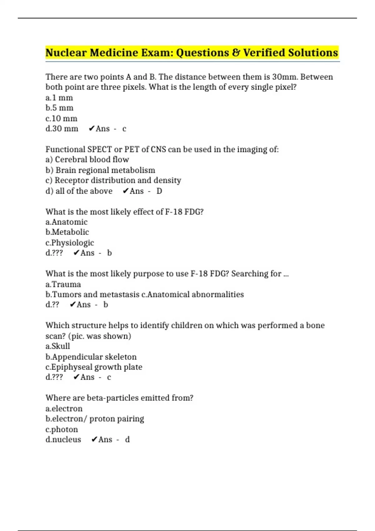 Nuclear Medicine Exam: Questions & Verified Solutions