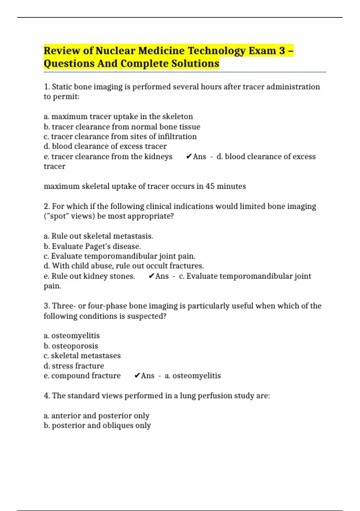 Review of Nuclear Medicine Technology Exam 3 – Questions And Complete Solutions