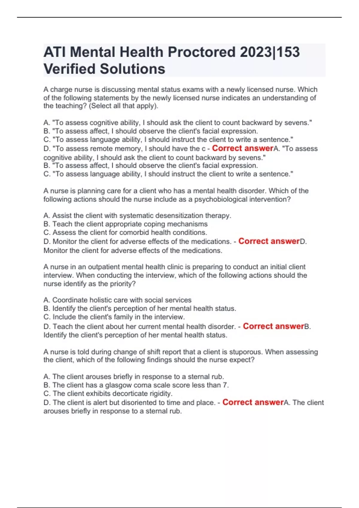 ATI Mental Health Proctored 2023|153 Verified SolutionsATI Mental Health Proctored 2023|153 Verified SolutionsATI Mental Health Proctored 2023|153 Verified Solutions