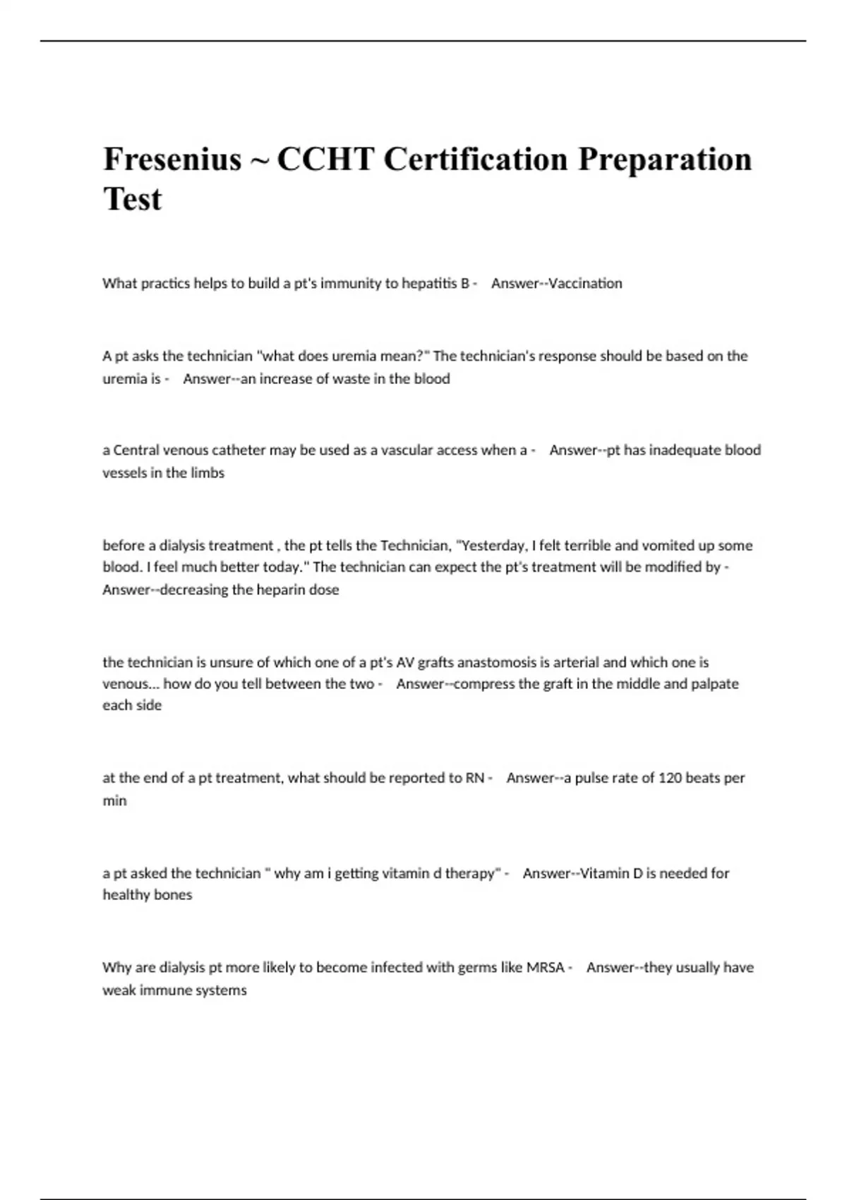 Fresenius ~ CCHT Certification Preparation Test.