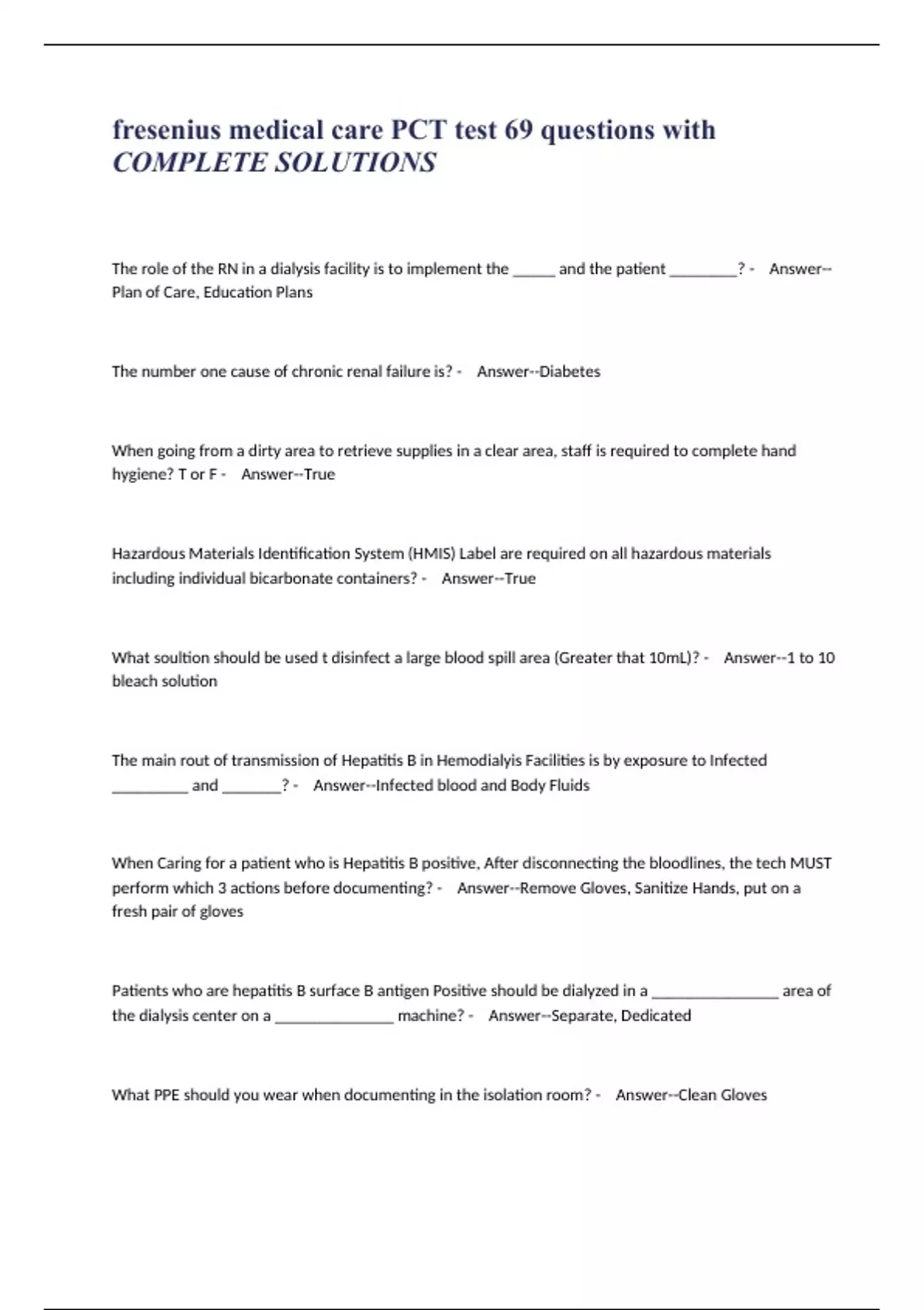 fresenius medical care PCT test 69 questions with COMPLETE SOLUTIONS