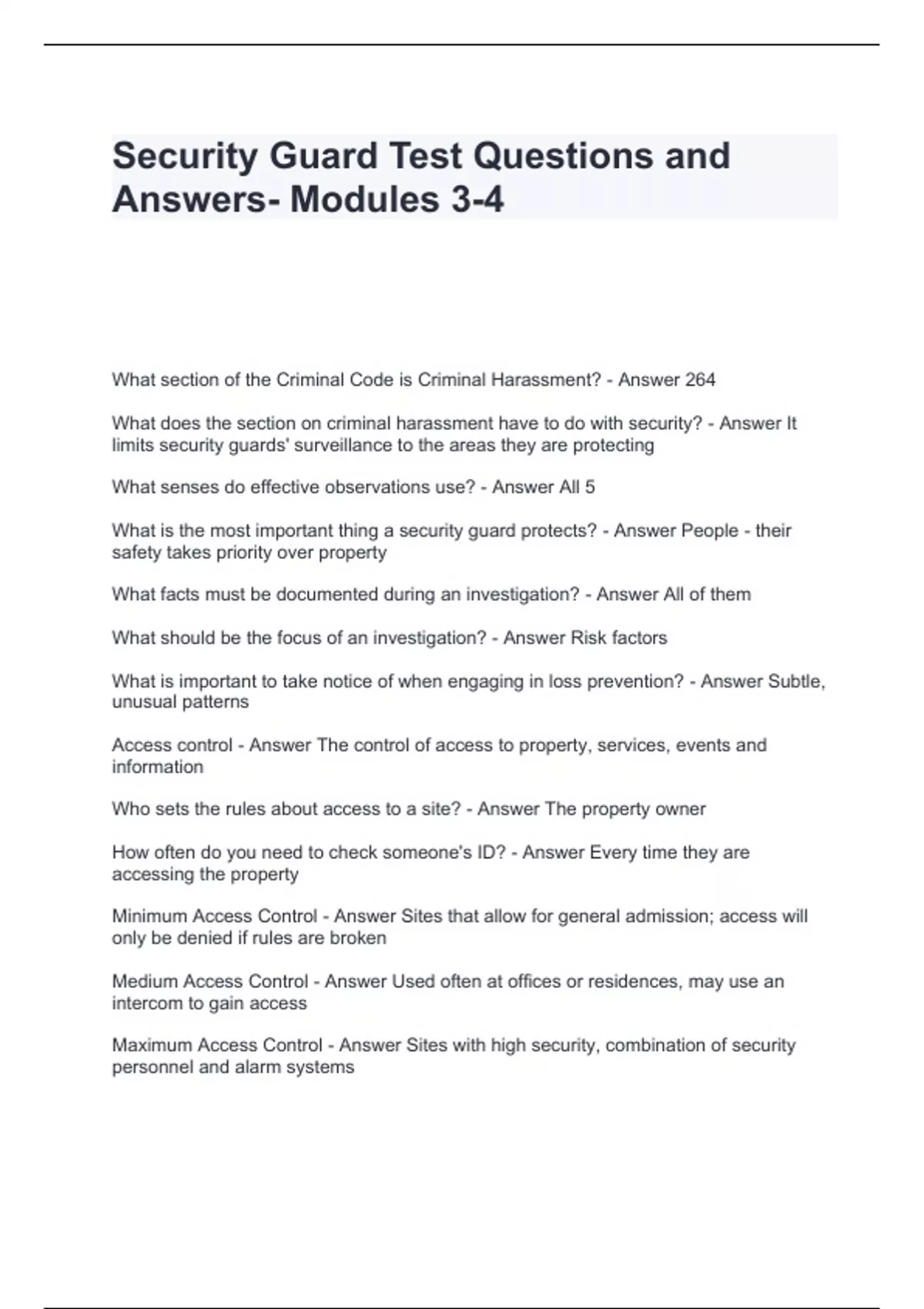 Security Guard Test Questions and Answers- Modules 3-4