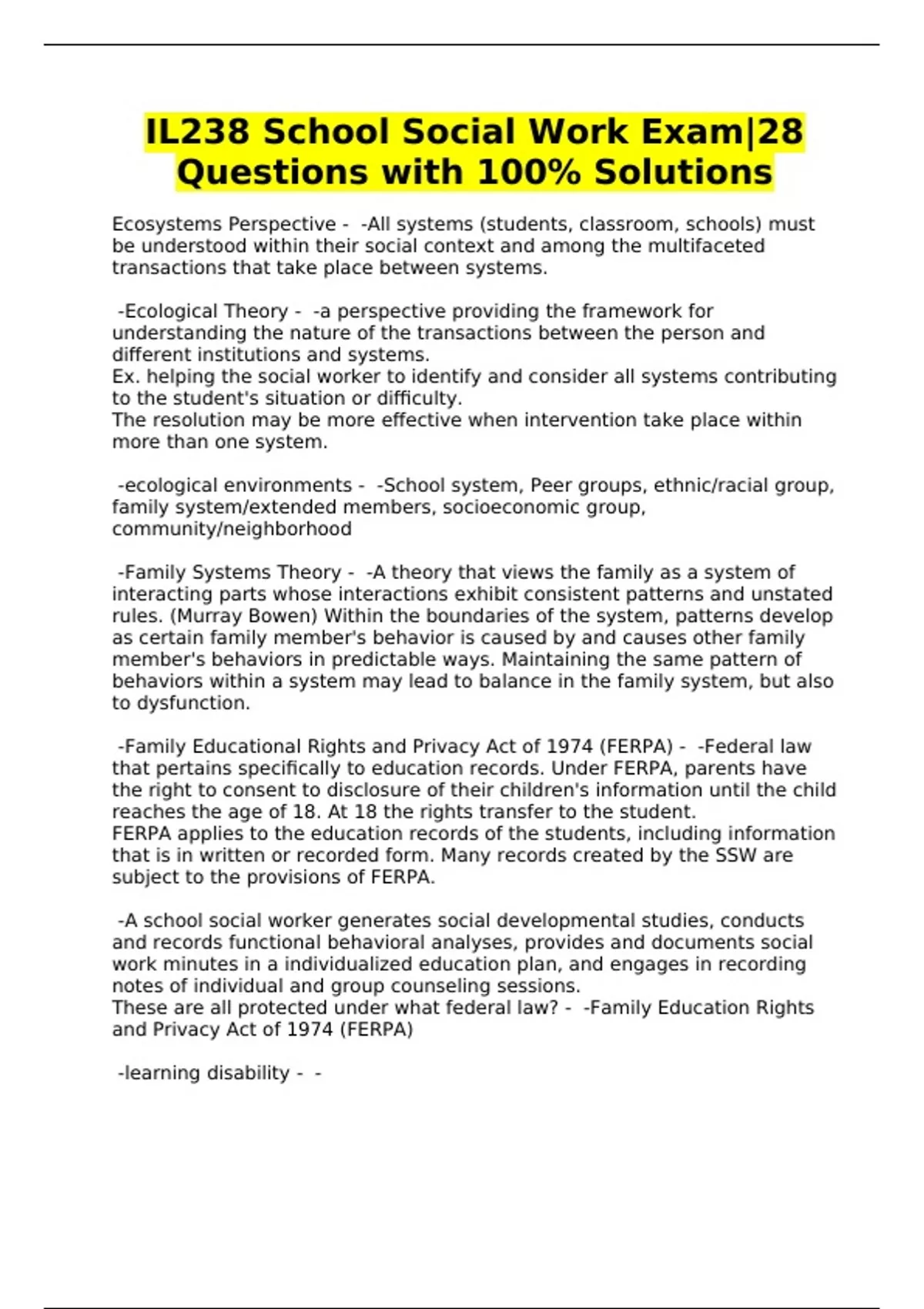 IL238 School Social Work Exam|28 Questions with 100% Solutions