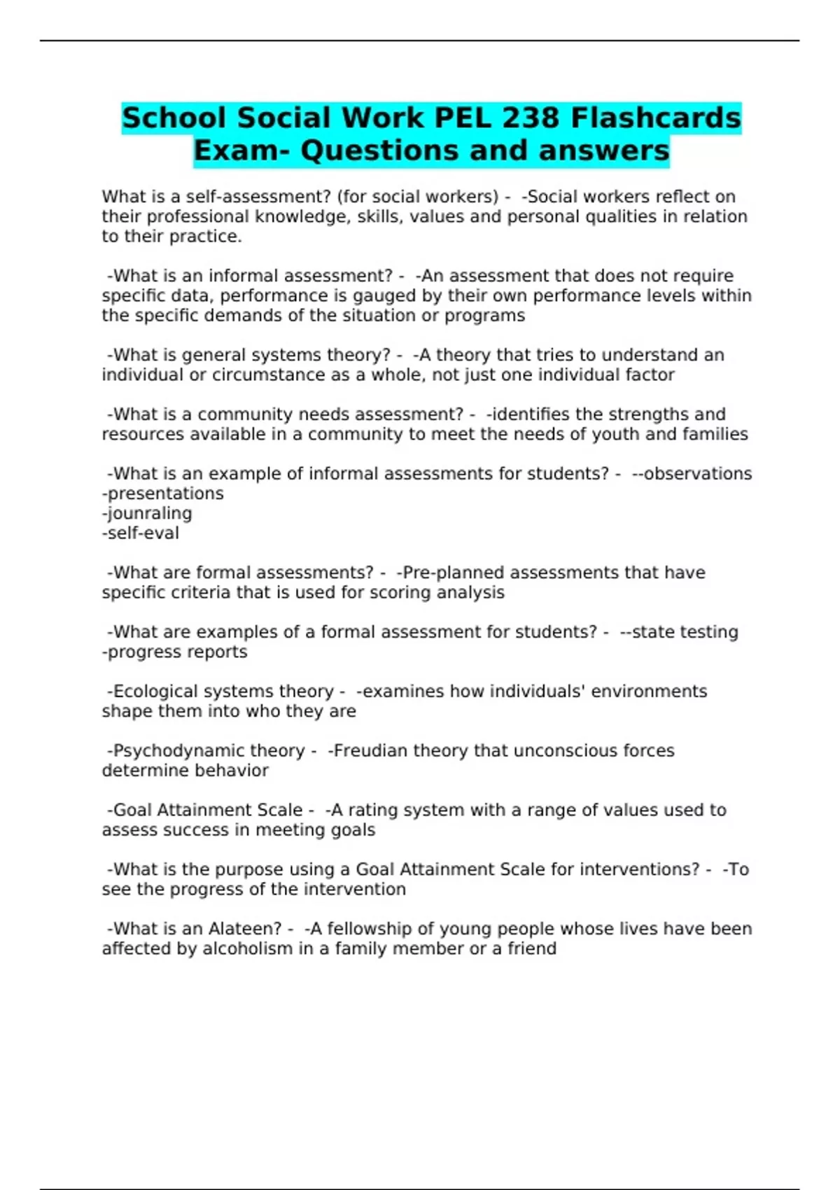 School Social Work PEL 238 Flashcards Exam- Questions and answers