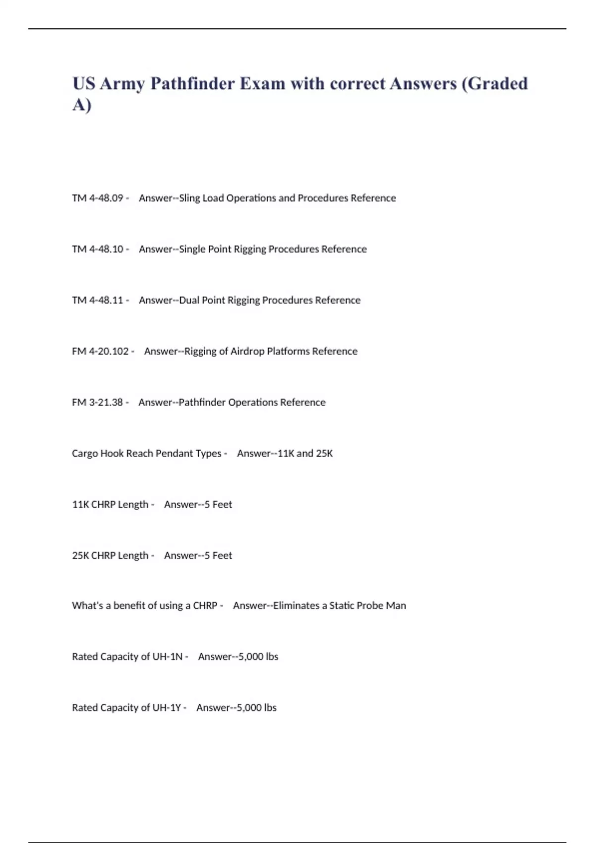 US Army Pathfinder Exam with correct Answers (Graded A).