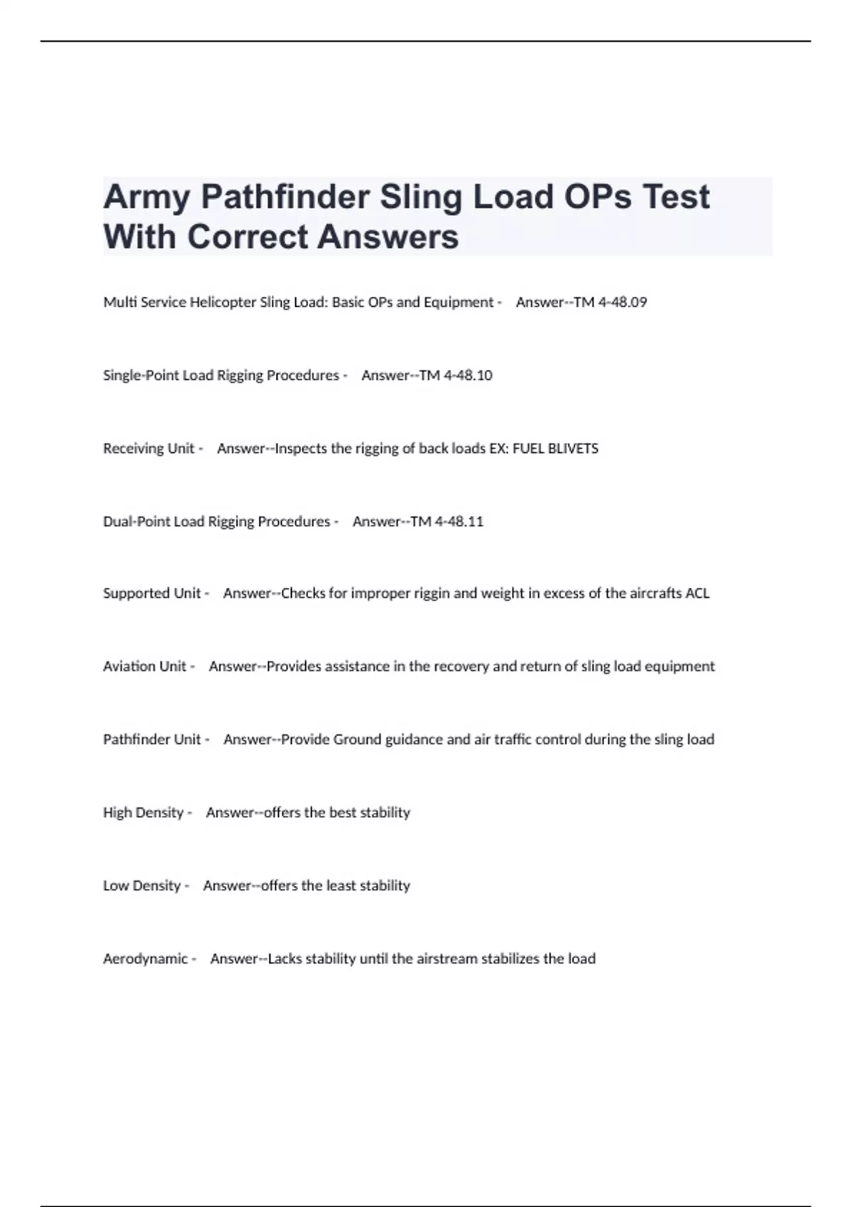 Army Pathfinder Sling Load OPs Test With Correct Answers.