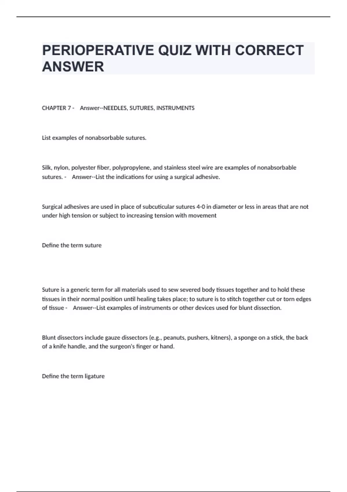 PERIOPERATIVE QUIZ WITH CORRECT ANSWER
