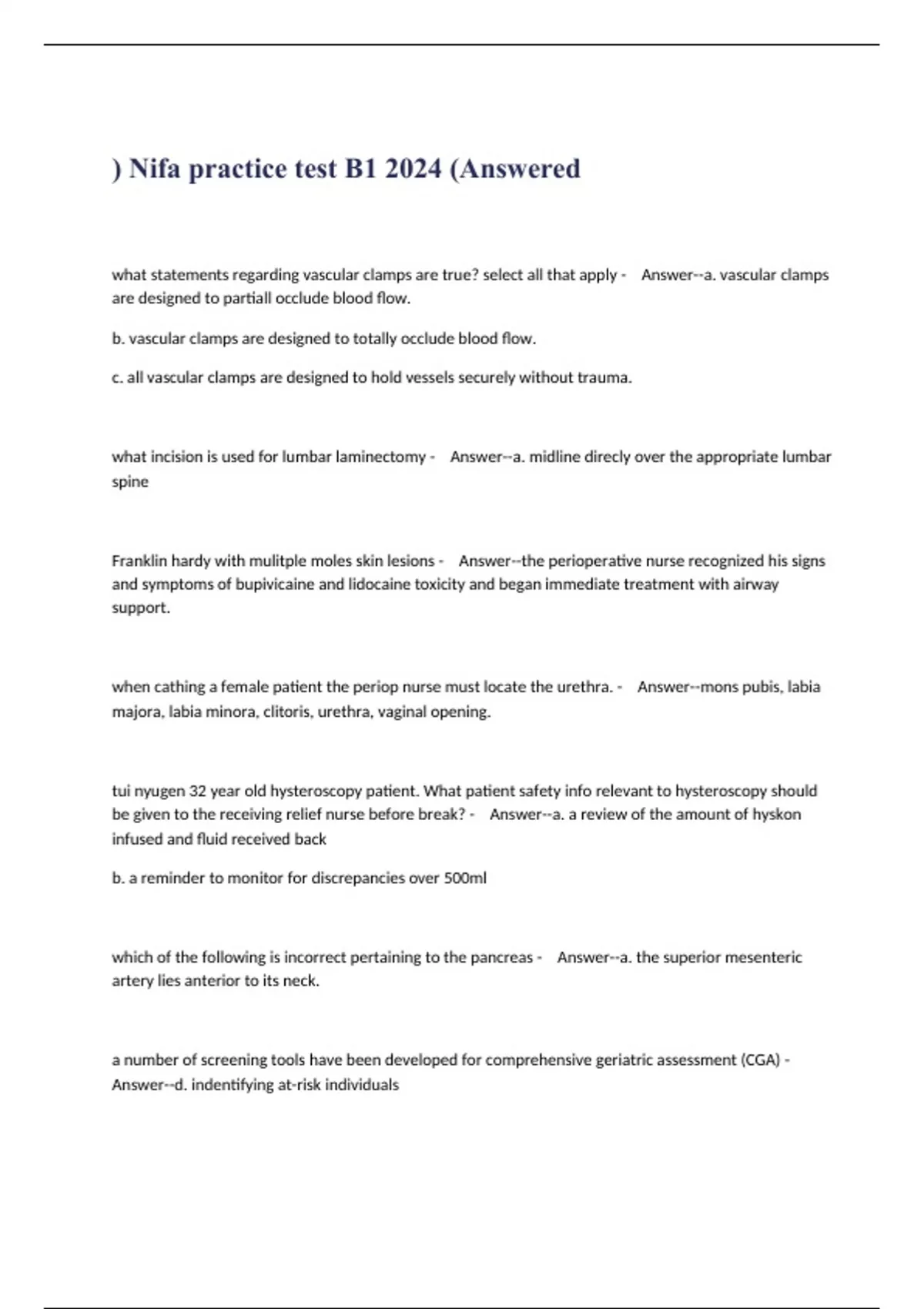 Nifa practice test B1 2024 (Answered.