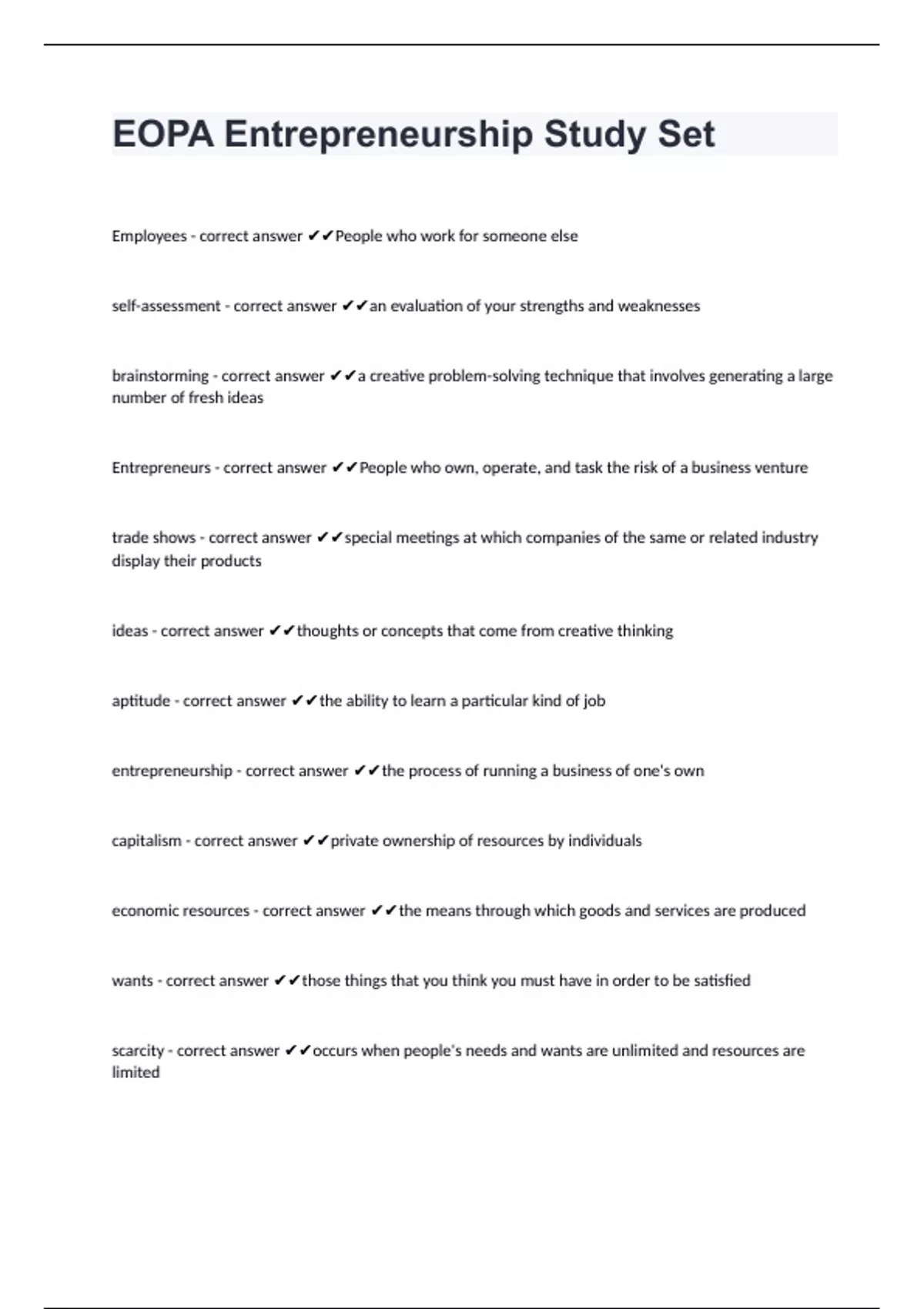 EOPA Entrepreneurship Study Set fully solved rated A+