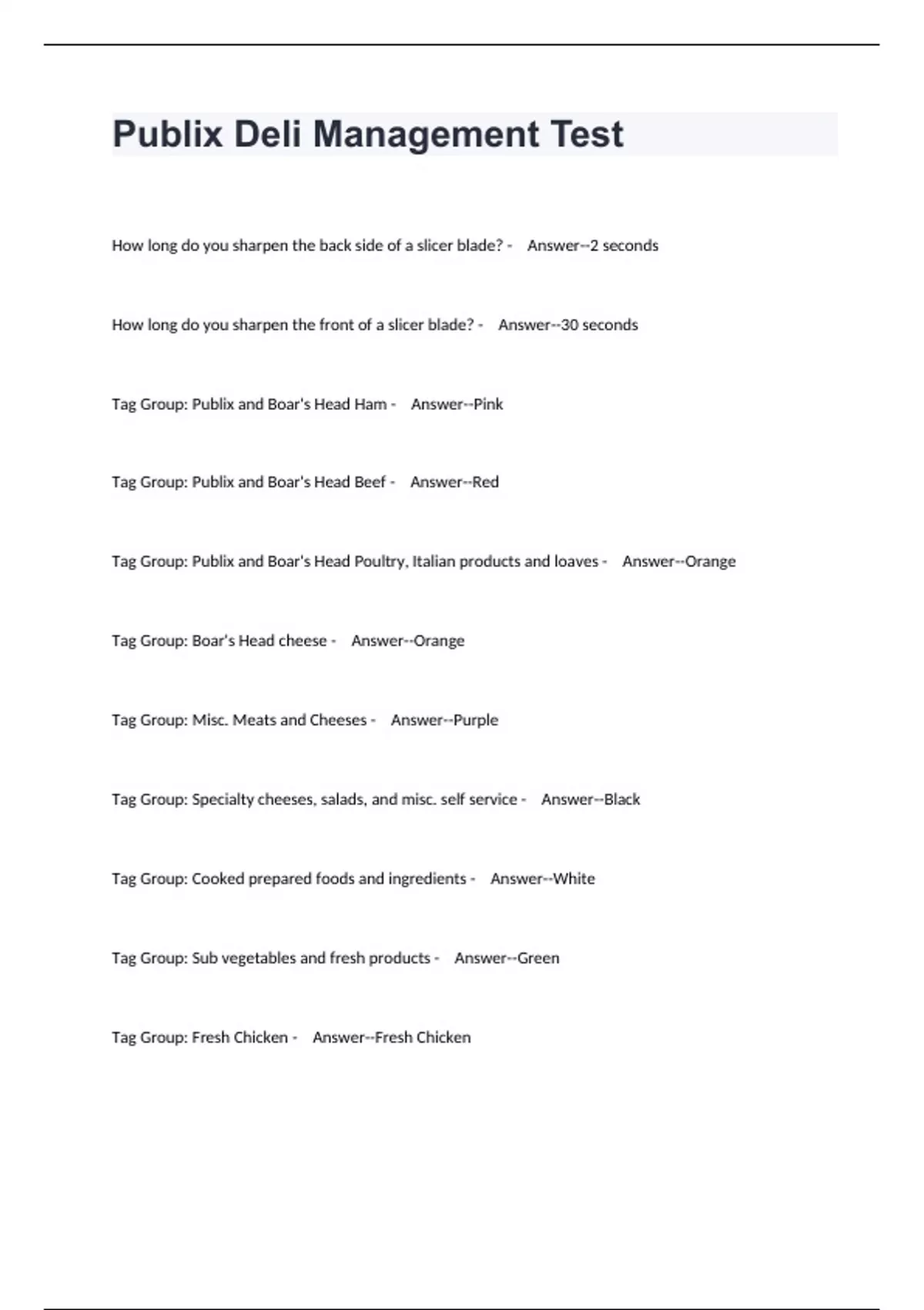 publix deli management test