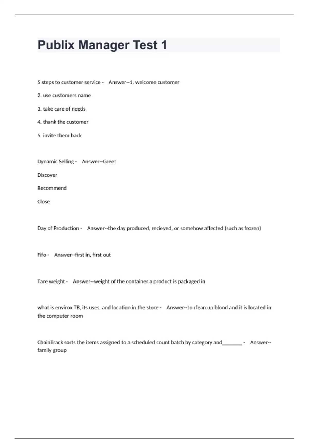 Publix Manager Test 1
